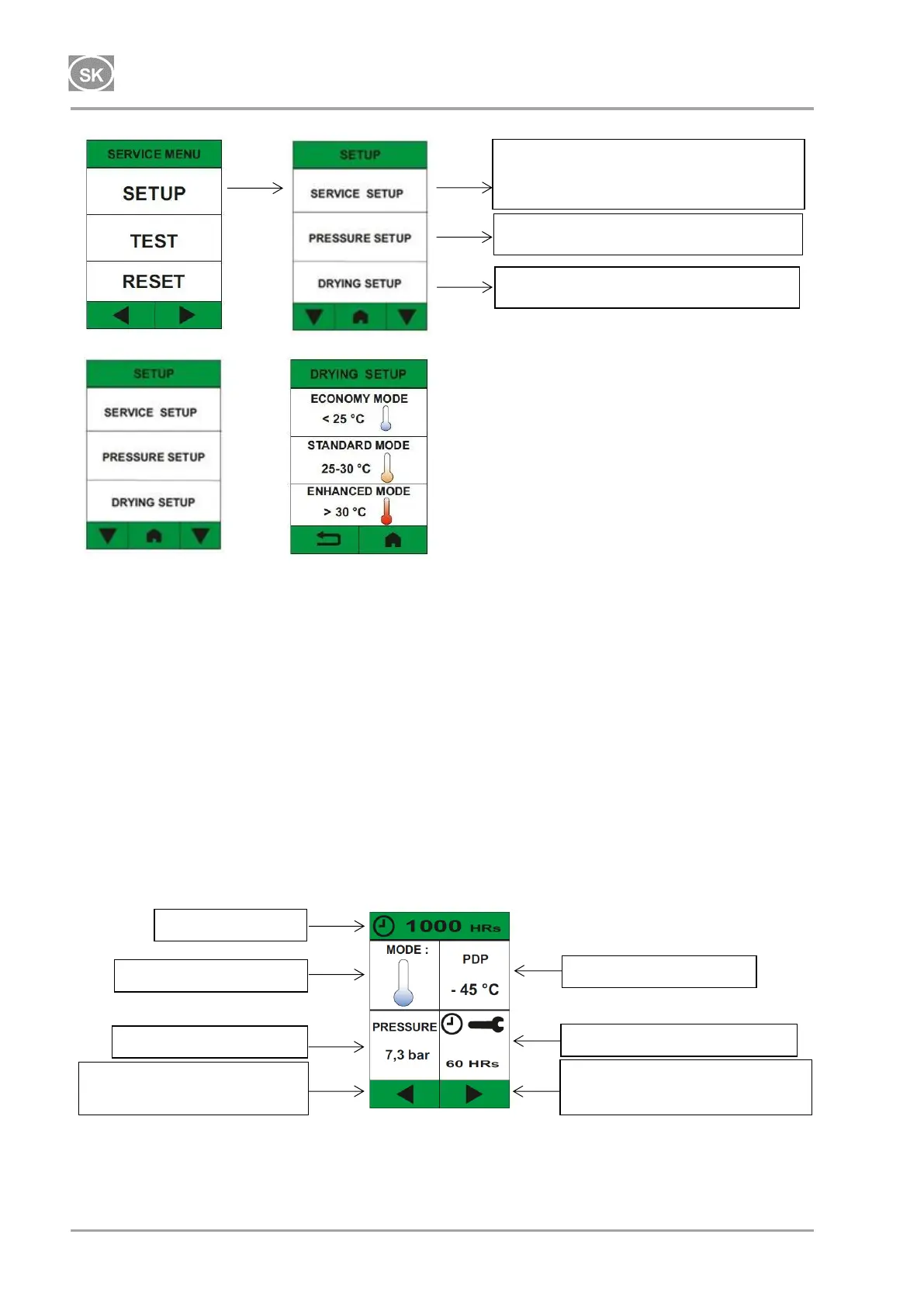 (*dané informácia je zobrazená iba v prípade vybavenia kompresora snímačom rosného bodu )