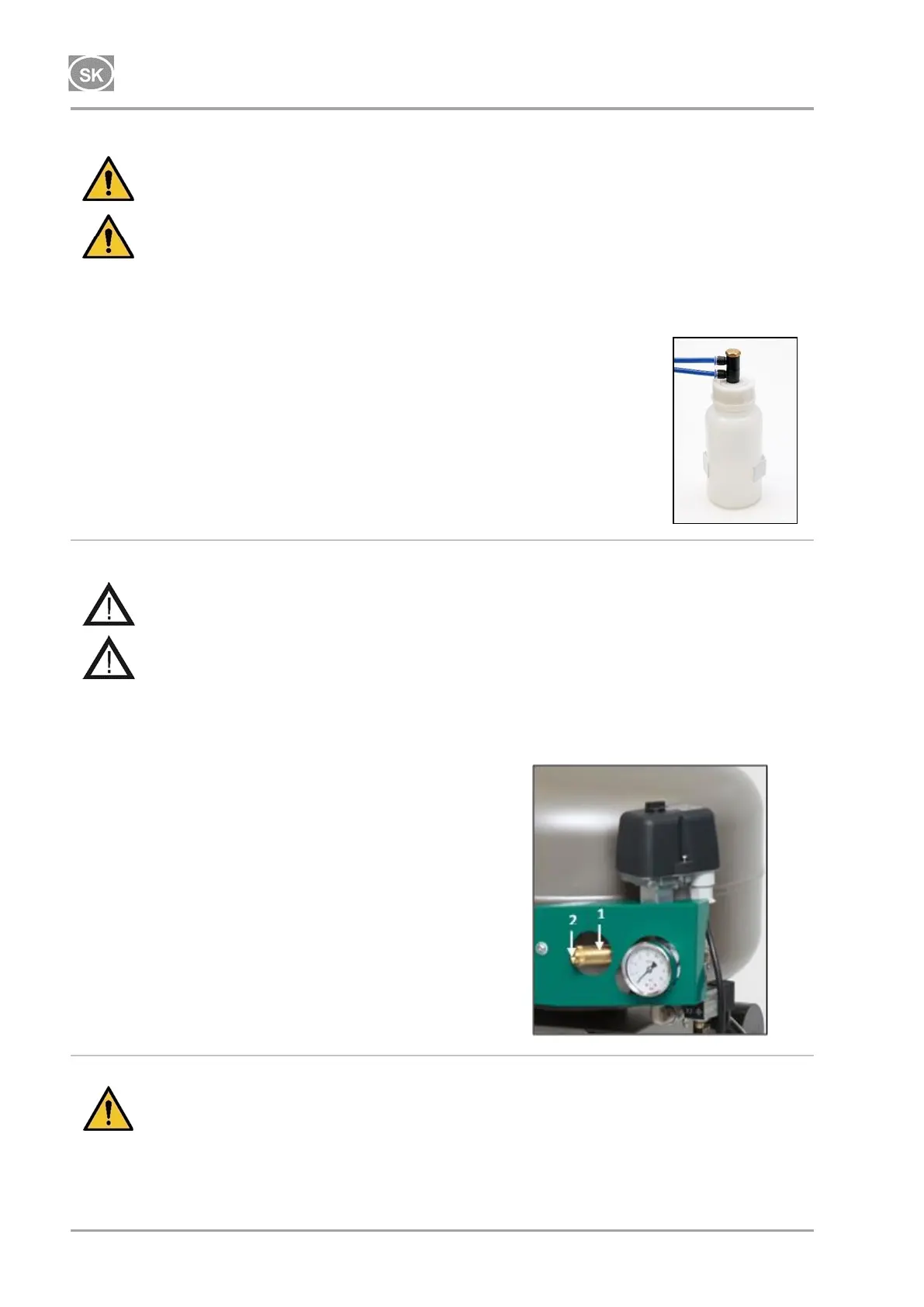 Pred každým vyprázdňovaním nádoby je nutné kompresor vypnúť !