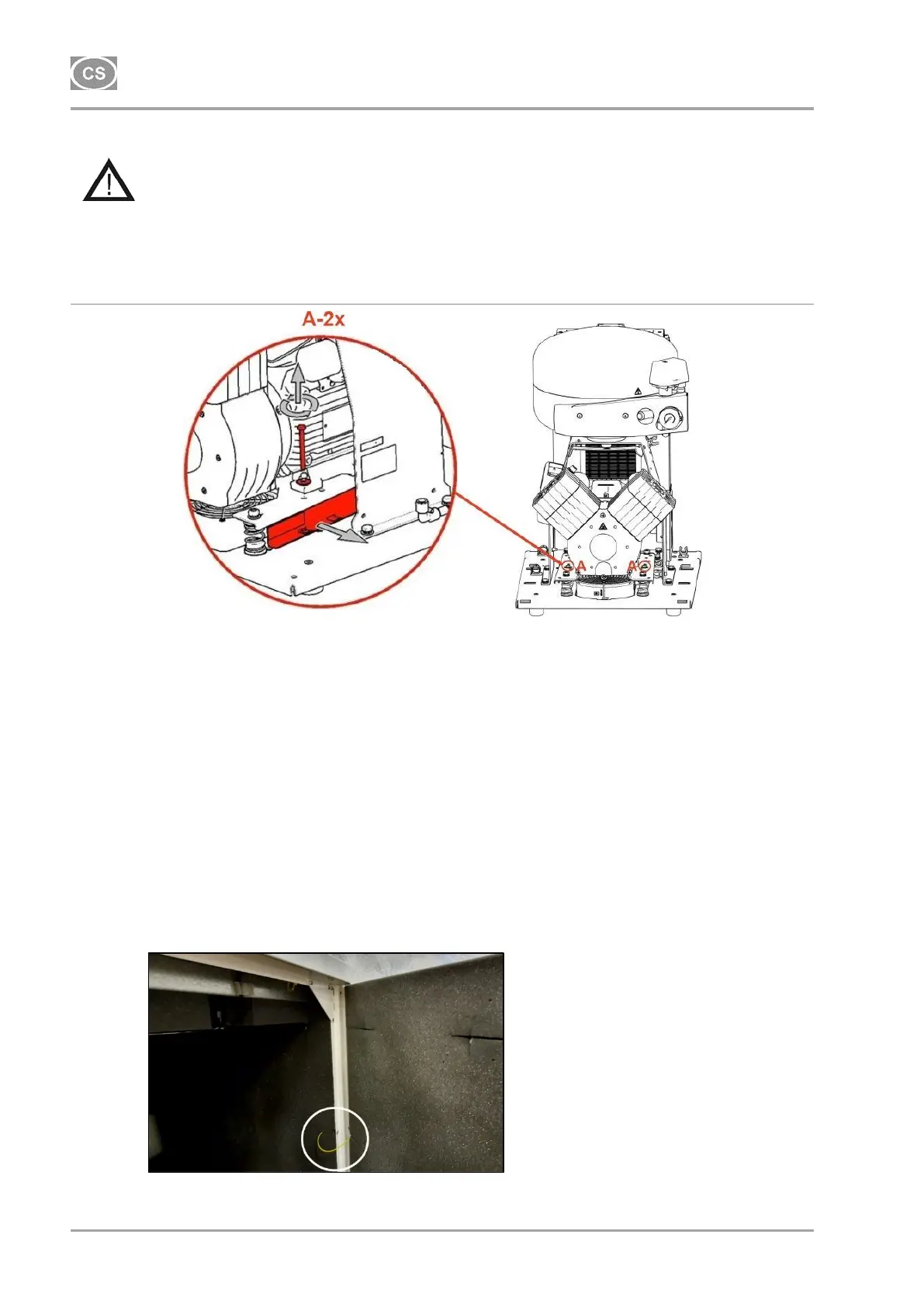 Fixační prvky agregátů odstraňte až po ustavení a vyvážení kompresoru na místě