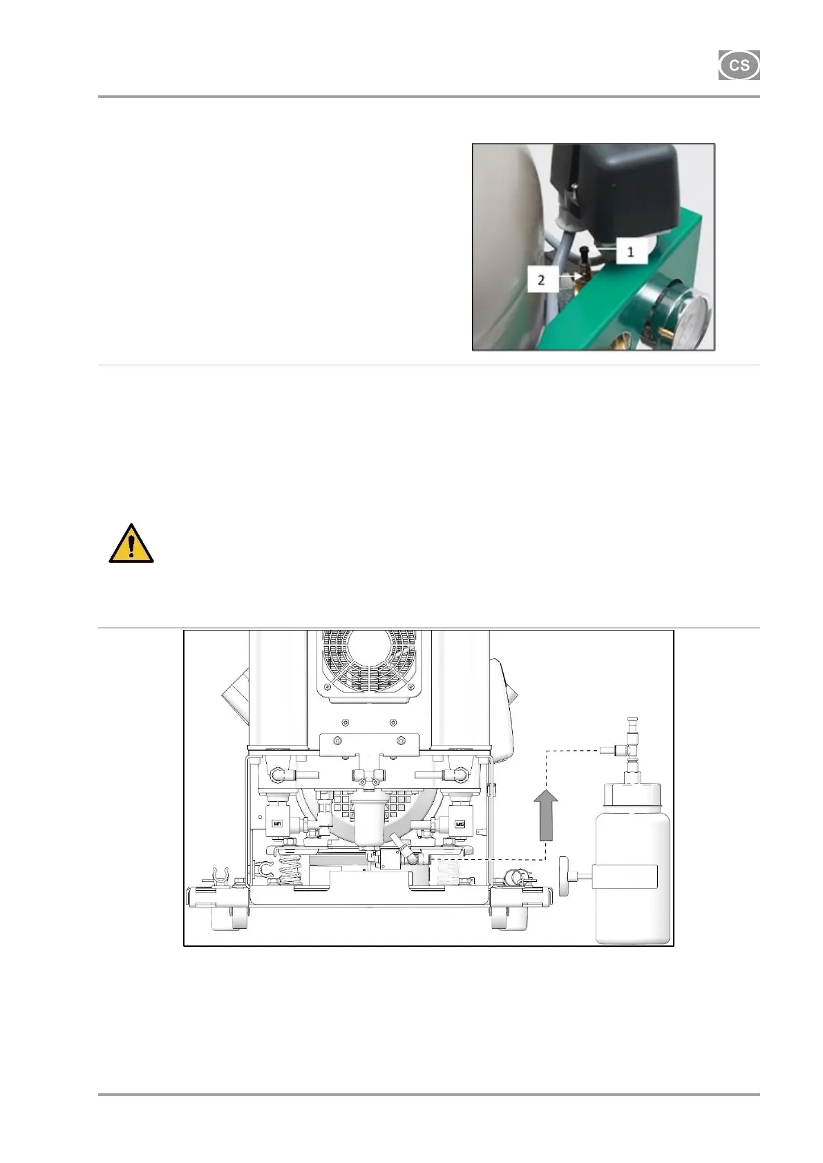 Nádobu na sběr kondenzátu propojte hadičkou s výstupem kondenzátu na sušiči. (Obr. 8)
