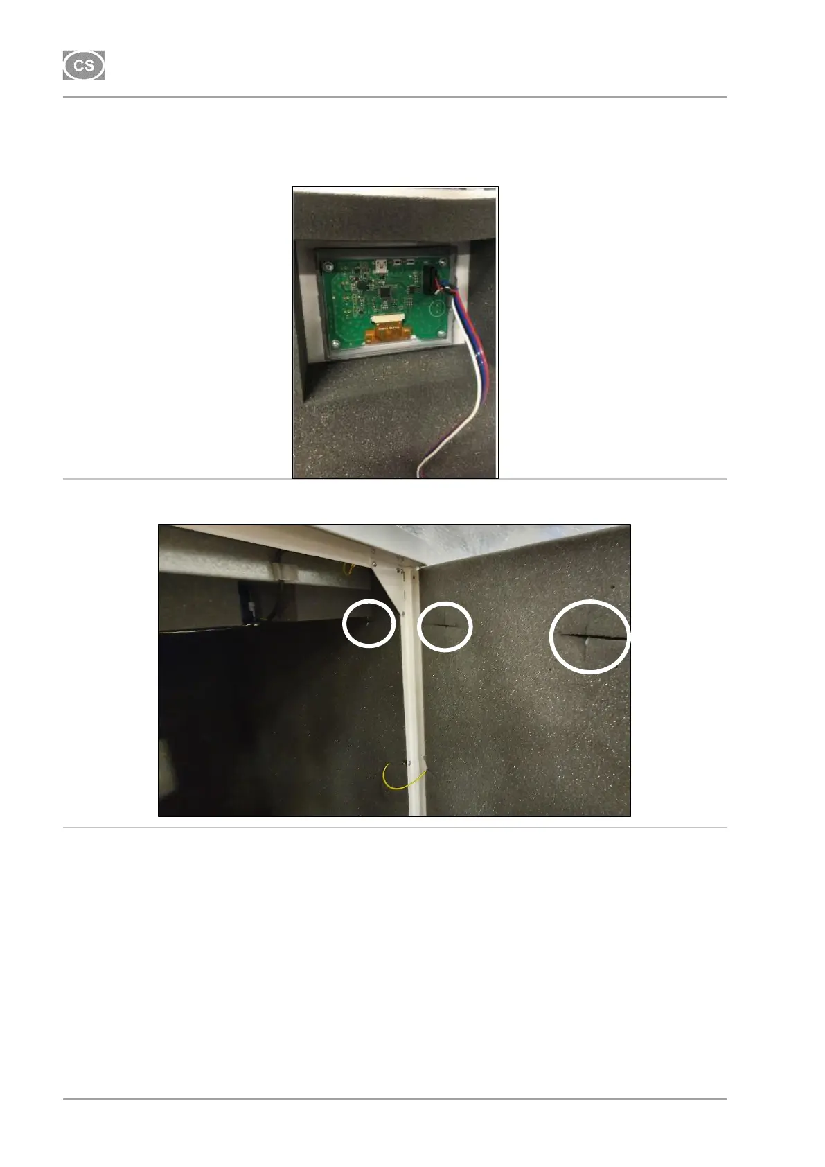 Připojte displej v předních dvířkách skříňky (Obr. 15), a kabel k displeji zafixujte v