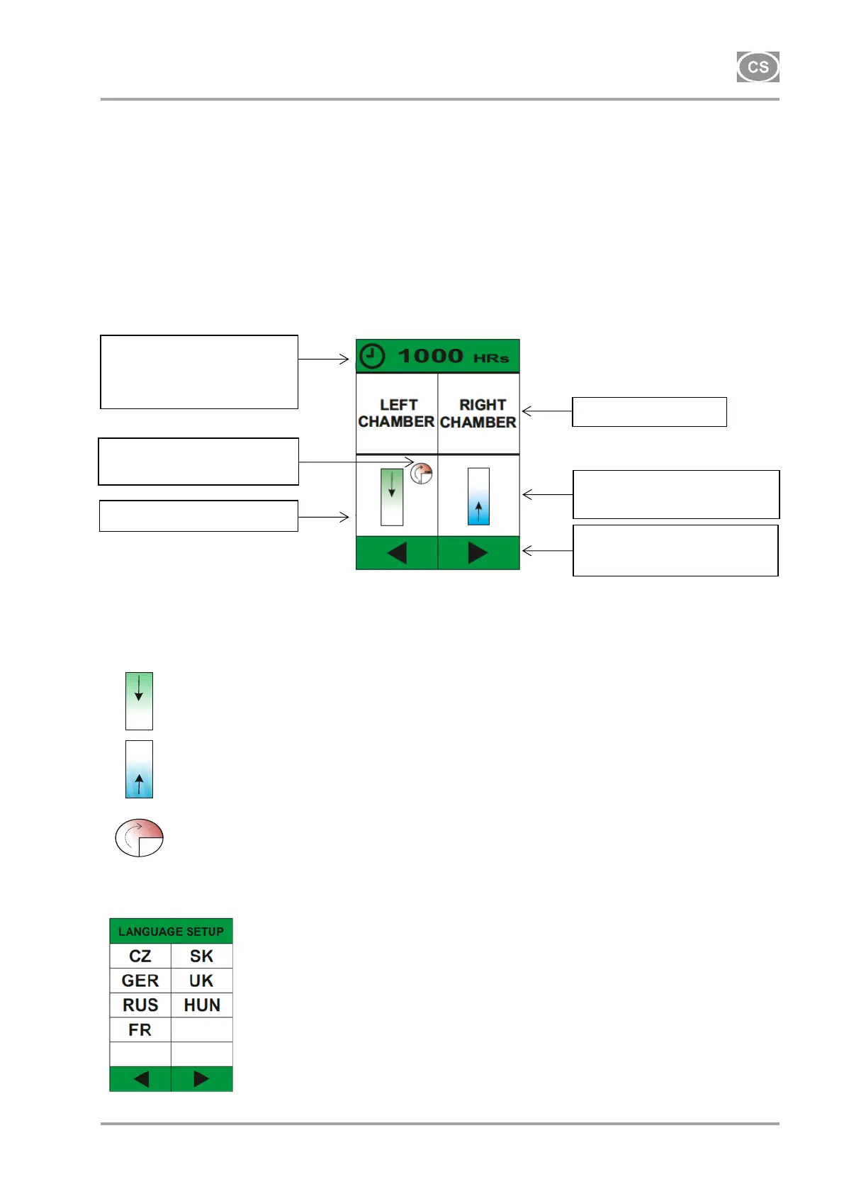 Symbol předplnění komor – vyrovnávání tlaku v komorách.
