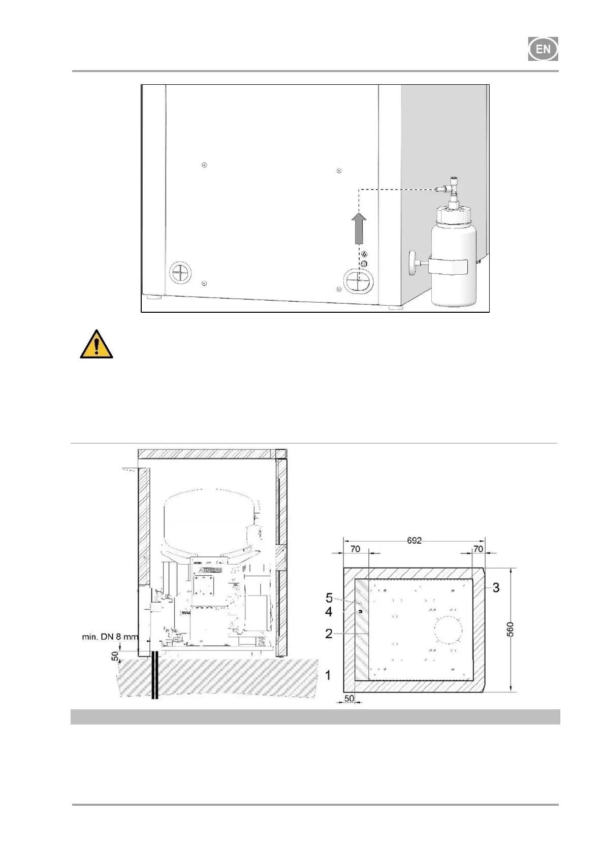 Connect the compressor using the hoses prepared in advance in the floor, as per the installation