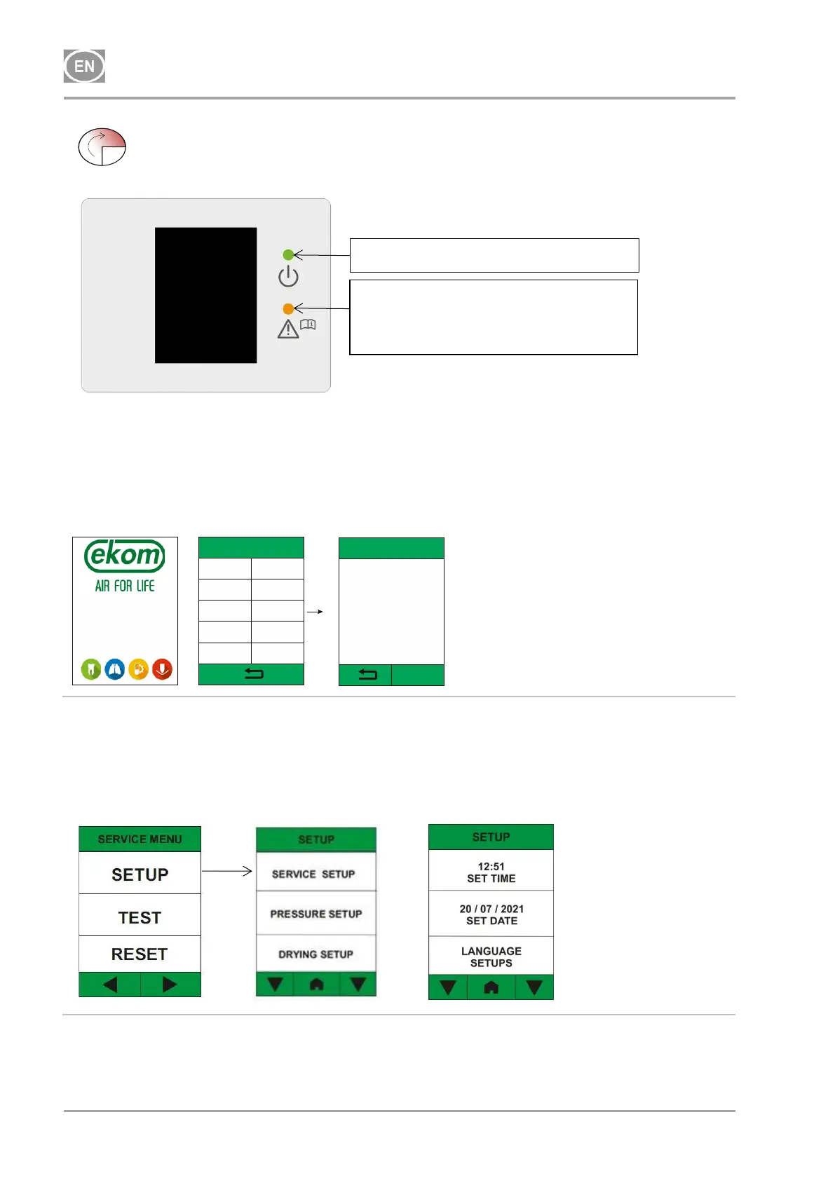 the service menu in the SERVICE SETUP section. Access to the service menu is protected by a