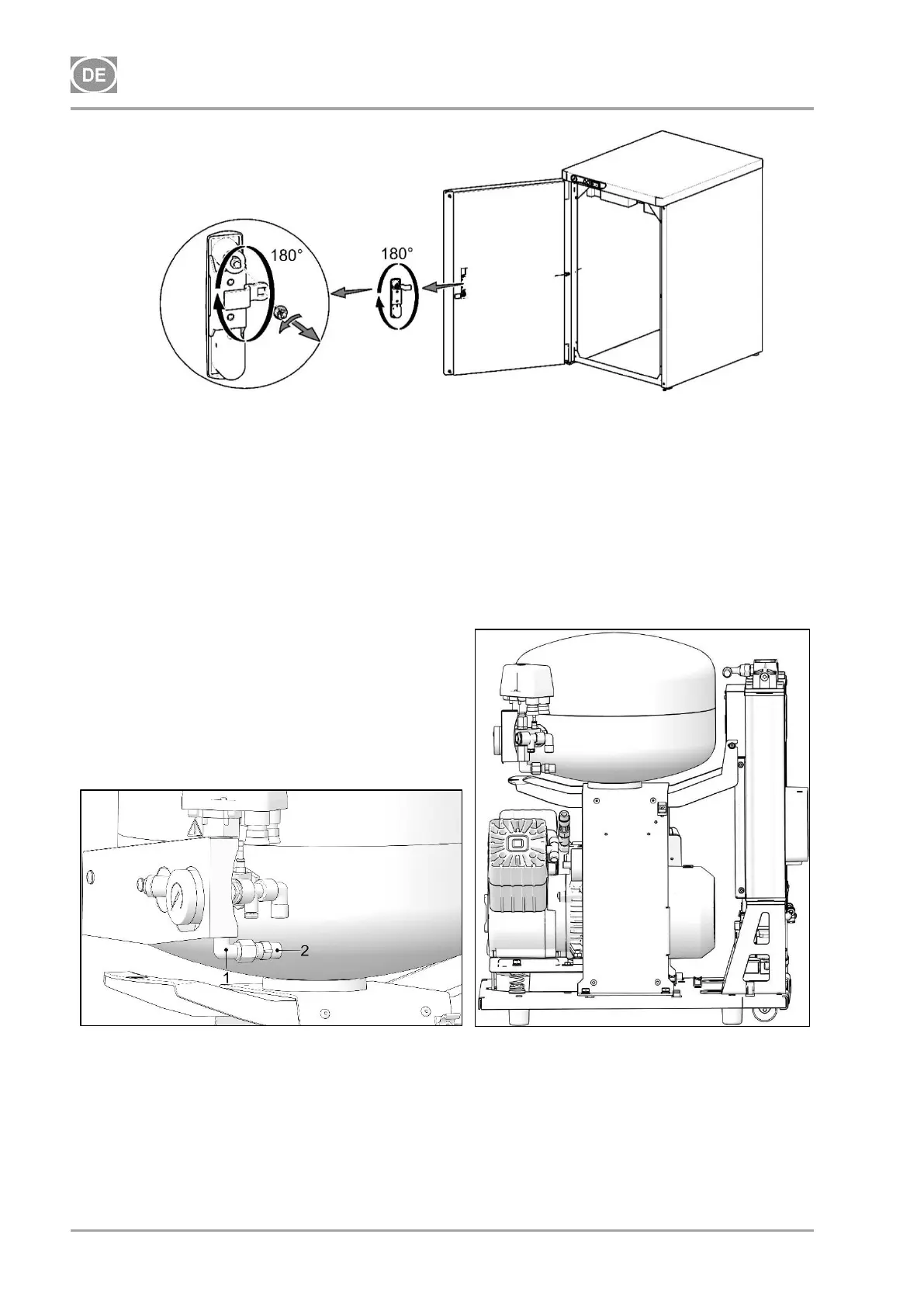 Verlegen Sie bei Kompressoren im Schrank den Druckschlauch durch die Öffnung auf der