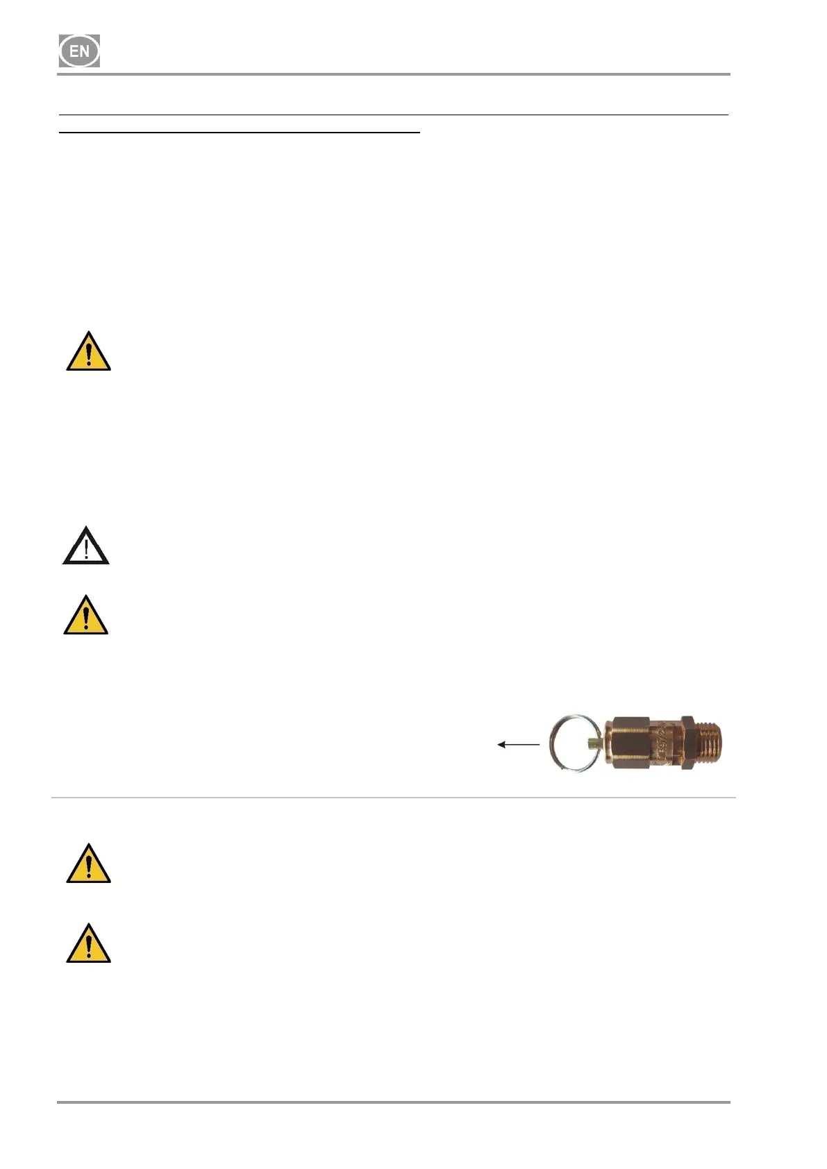 Never use the safety valve to vent air pressure in the air tank. It could damage the