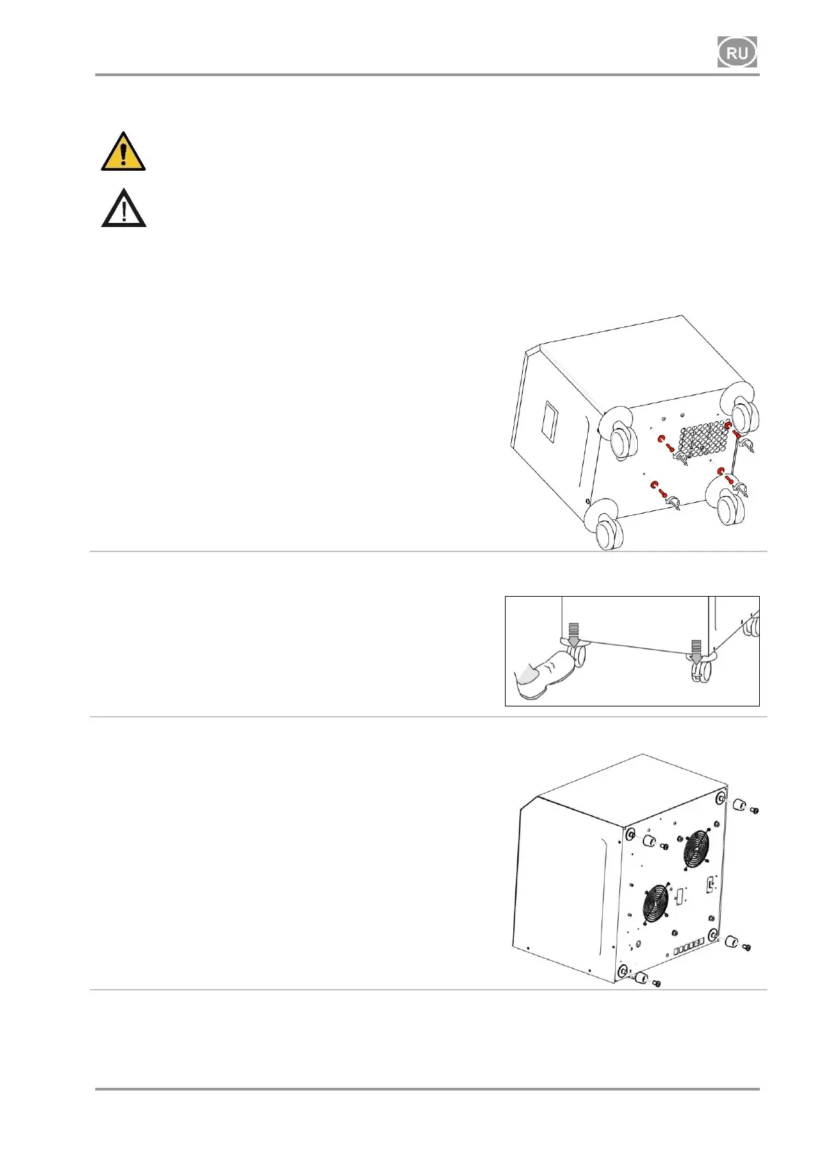Die Fixierschrauben für einen eventuellen späteren Transport des Kompressors