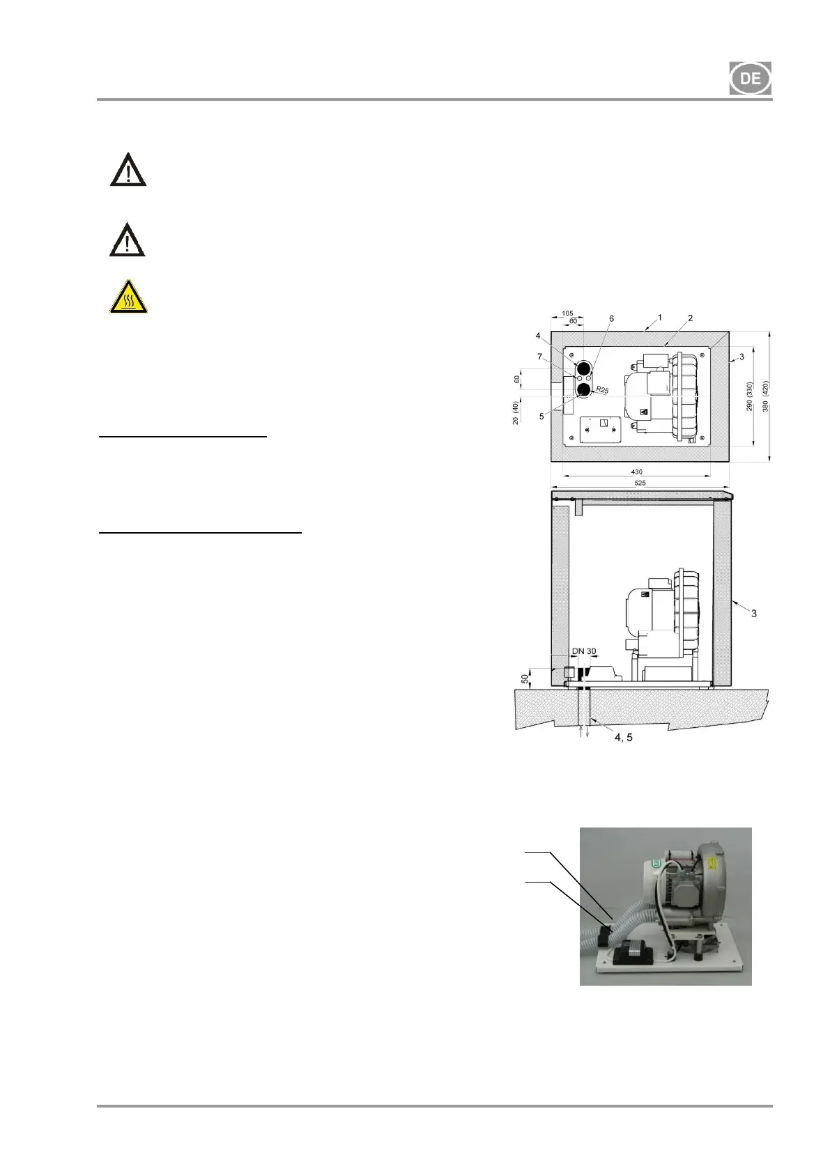 Beim Betrieb des Gerätes können sich Teile des Absaugaggregates auf Temperaturen