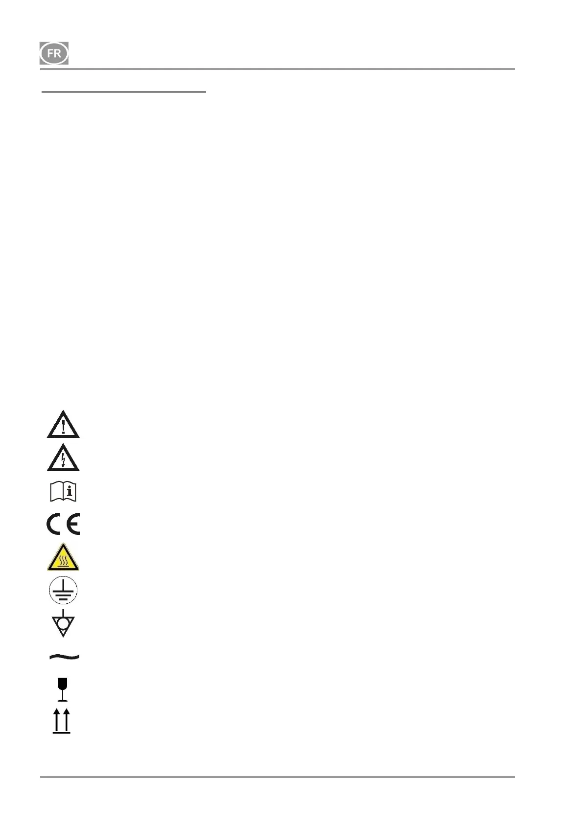 Les symboles suivants sont utilisés dans le manuel de l’utilisateur, sur l’appareil et son emballage