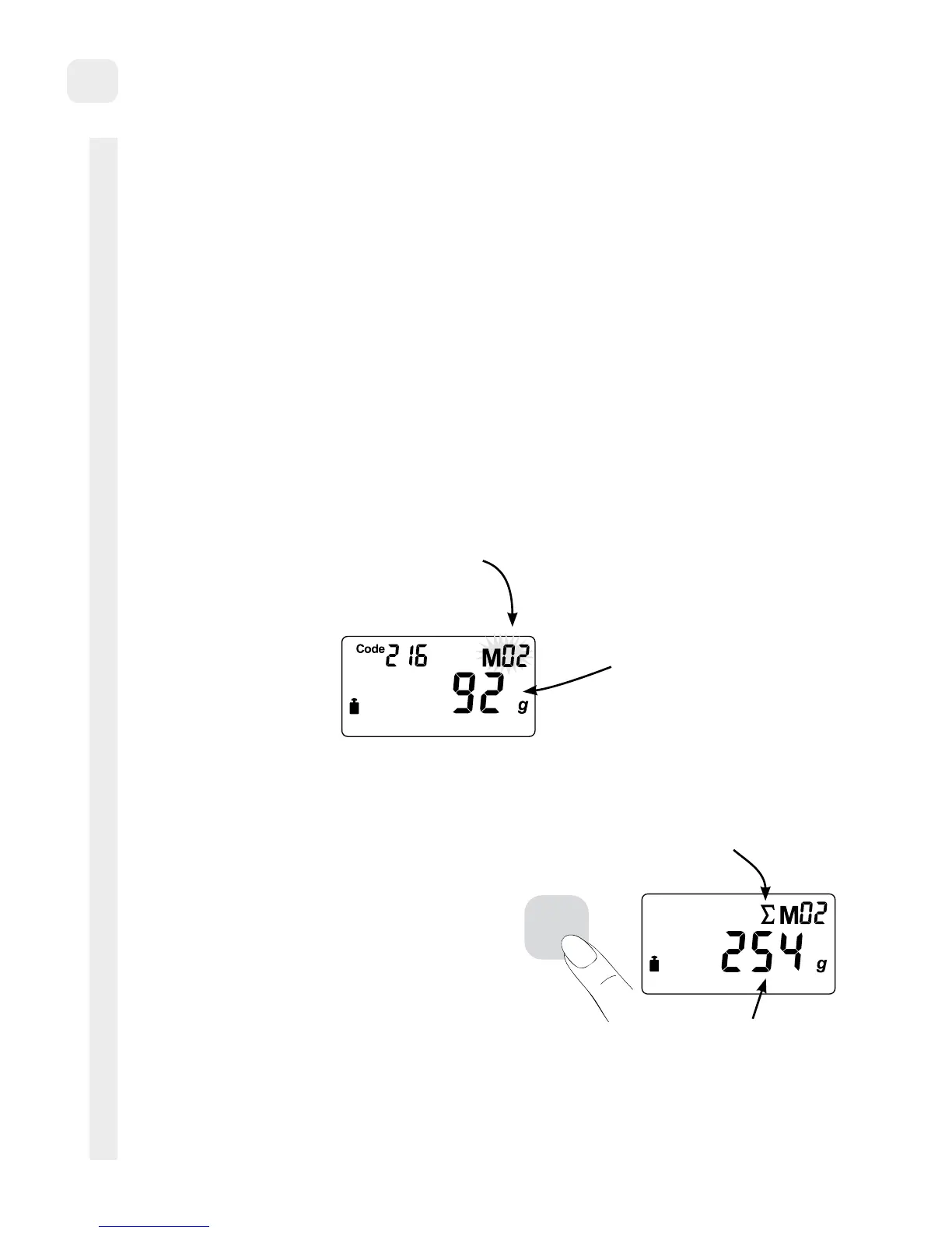 drücken Sie die MR-Taste. Jetzt wird das Gesamtgewicht aller