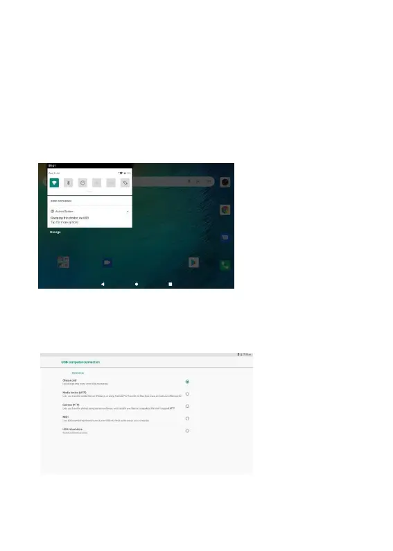 Touch button Transfer files(MTP) to mount the tablet’s built-in storage.