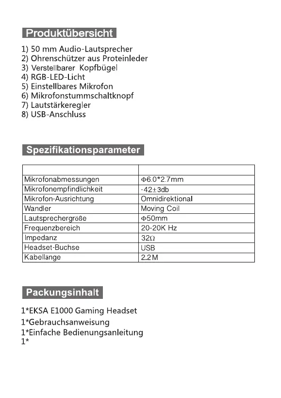 Kopfhörermodell E1000 Gaming Kopfhörer