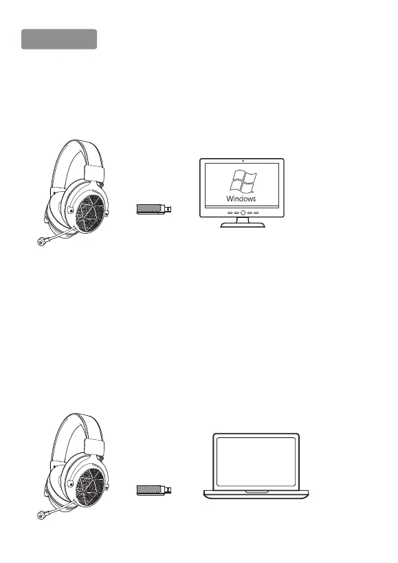 Inserisci il ricevitore USB 5.8G in qualsiasi porta USB funzionante del pc. Le cuffie si