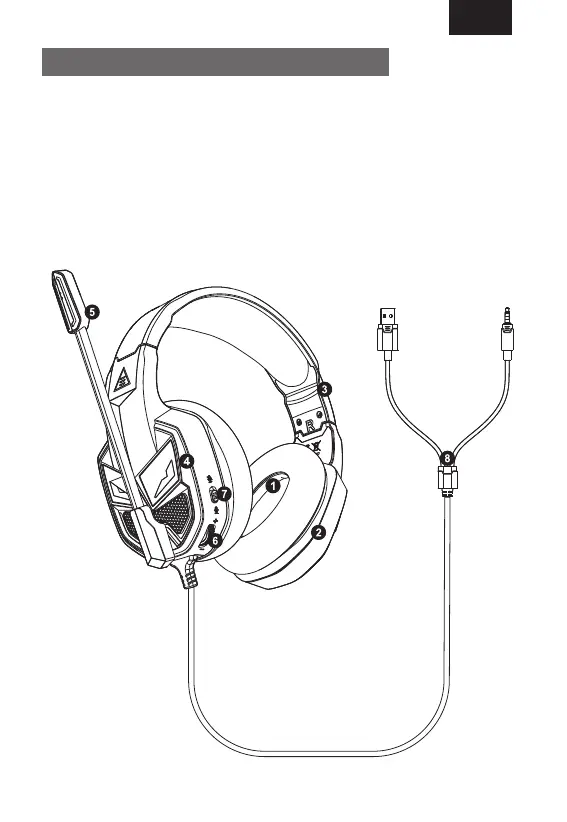 ⑧ Cable de Audio de 3.5mm + USB (sólo para iluminación LED)