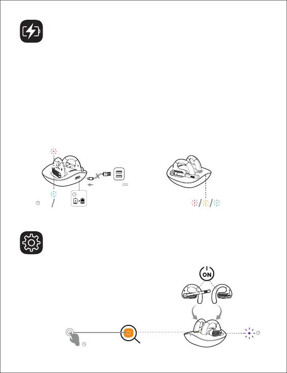 3. Die Kopfhörer-LED leuchtet lila für 1 Sekunde auf.