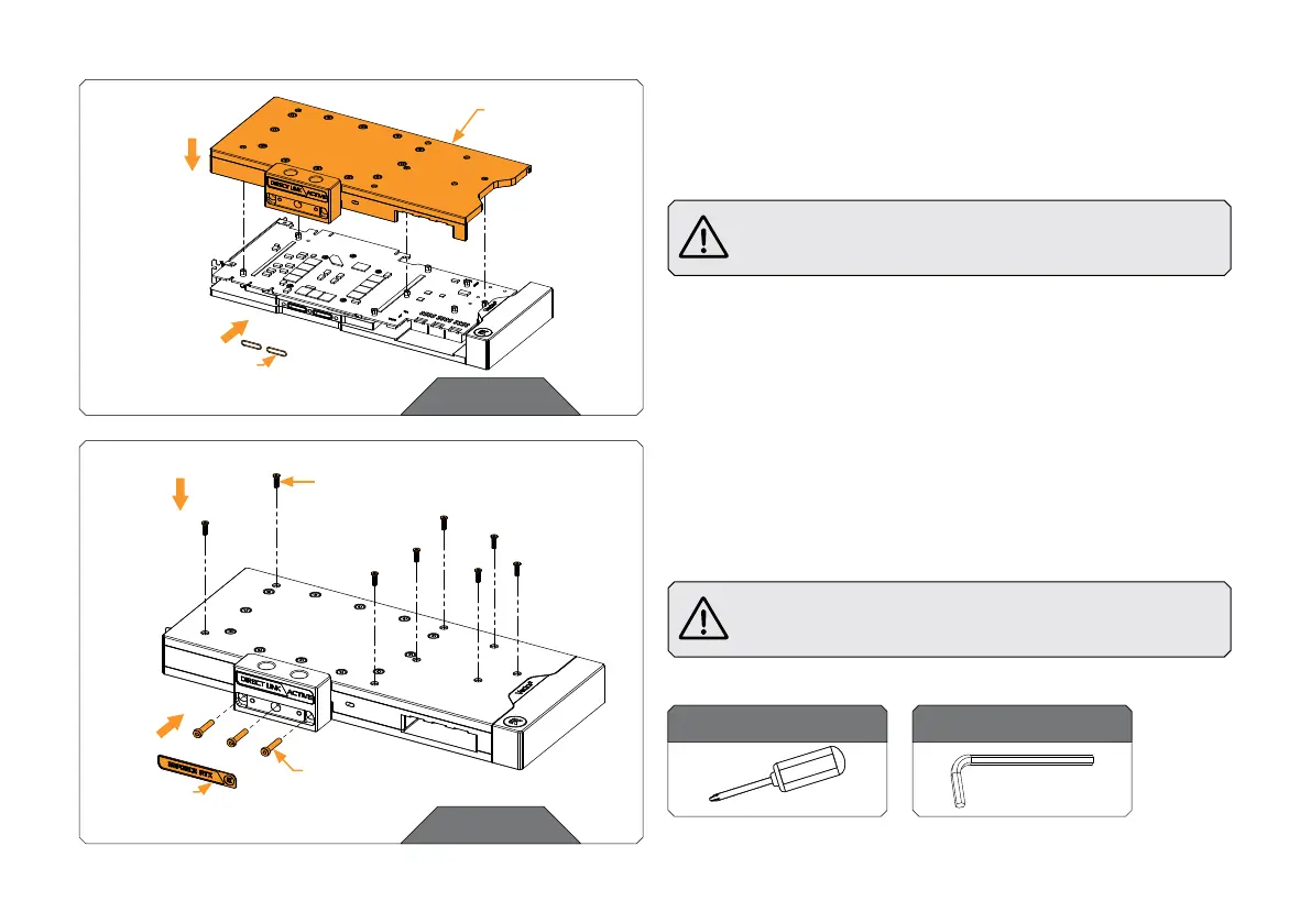 Place eight (8) M3 x 10 AX1 screws into the water block standoffs and