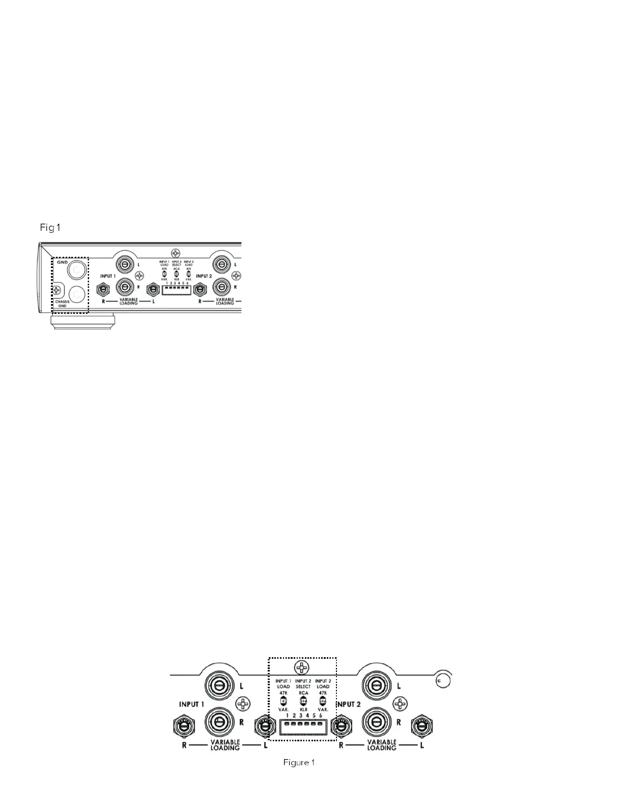 47 K ou la charge réglable pour les entrées 1 et 2.