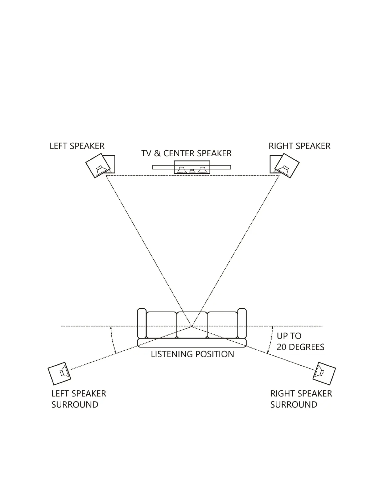 position. The surround speakers should be spread apart wider than the front speakers. In addition, elevate the