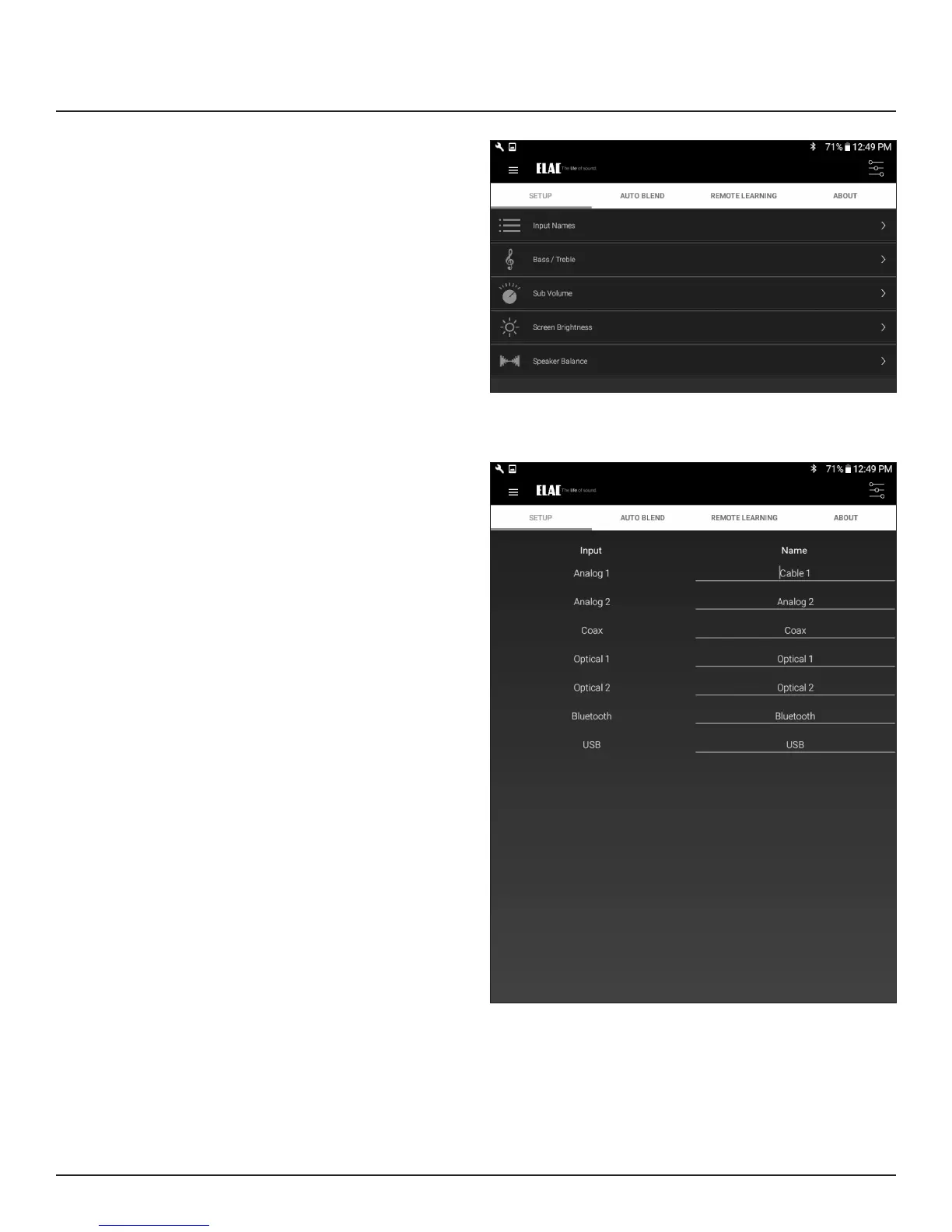 The settings for Input Names, Bass/Treble,