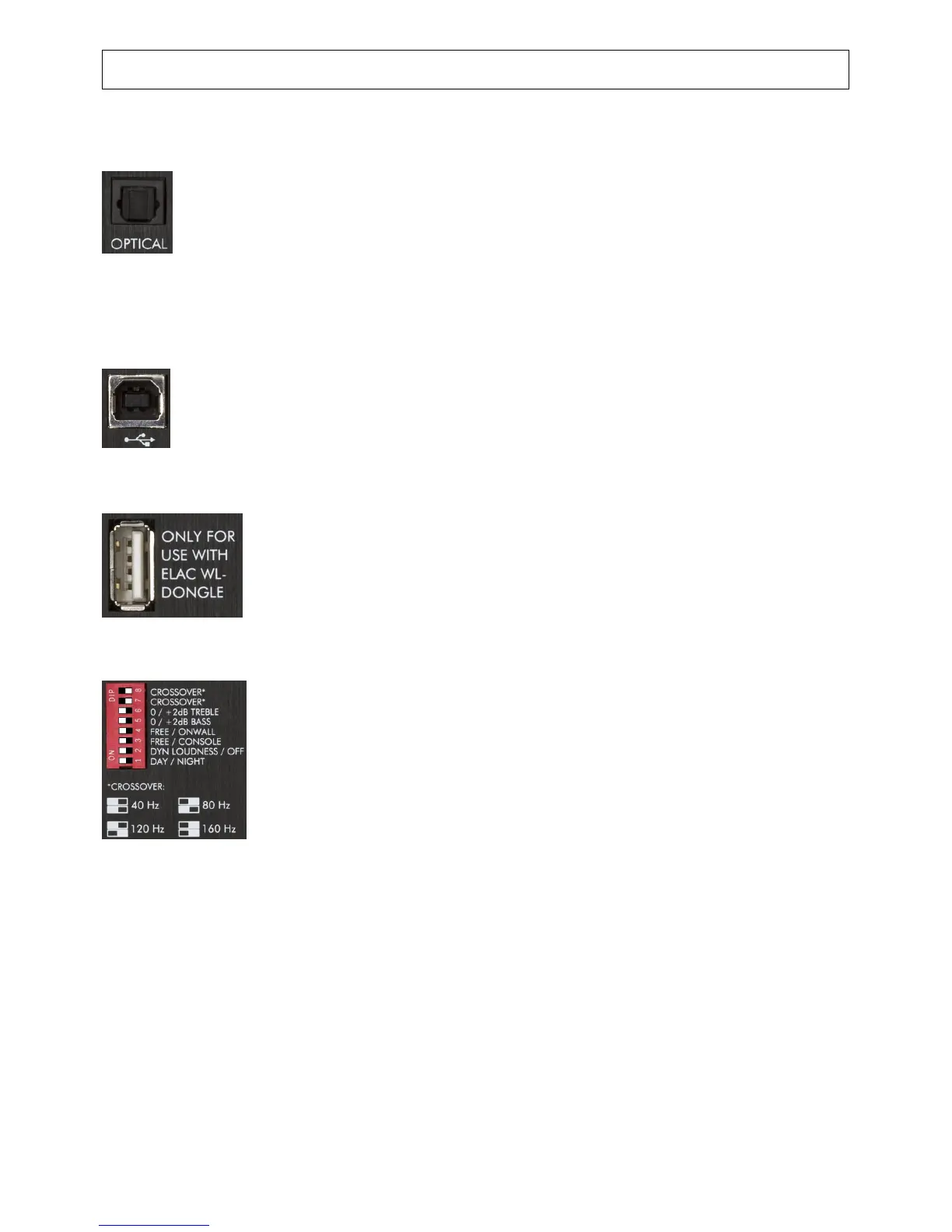 This USB jack (type A) can be used to connect the optionally available ELAC