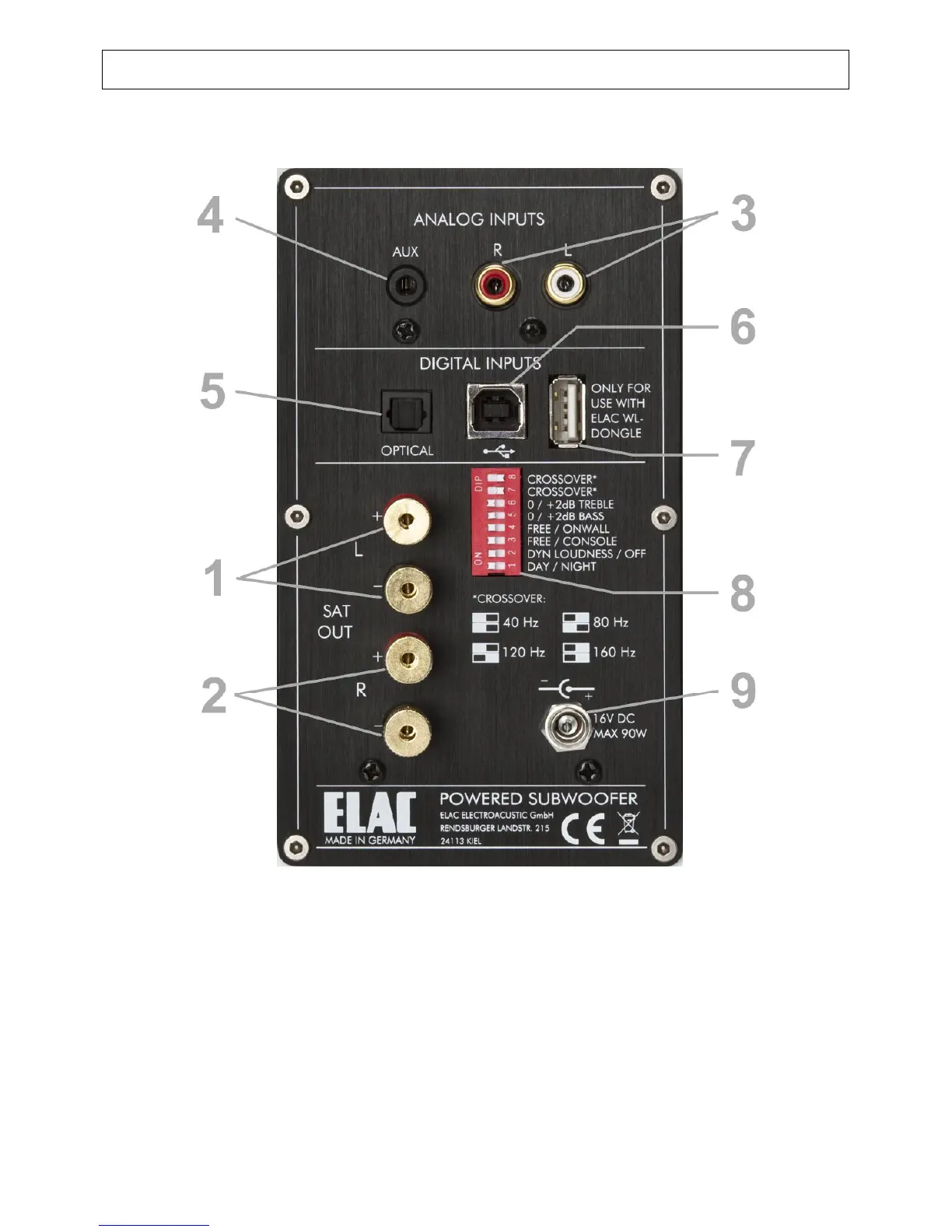7 USB-Anschluss (Typ A) zum Anschluss des ELAC Wireless Empfängers