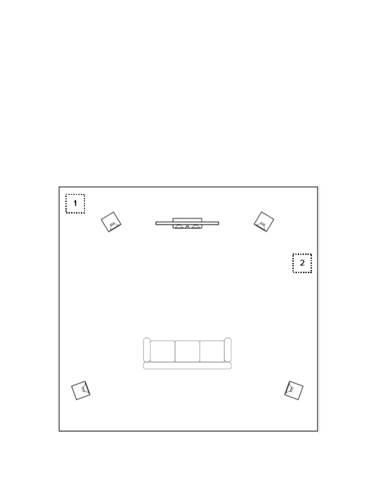 endroit pour votre haut-parleur d’extrêmes graves est dans le coin avant (1) de la pièce. Placez le haut-parleur