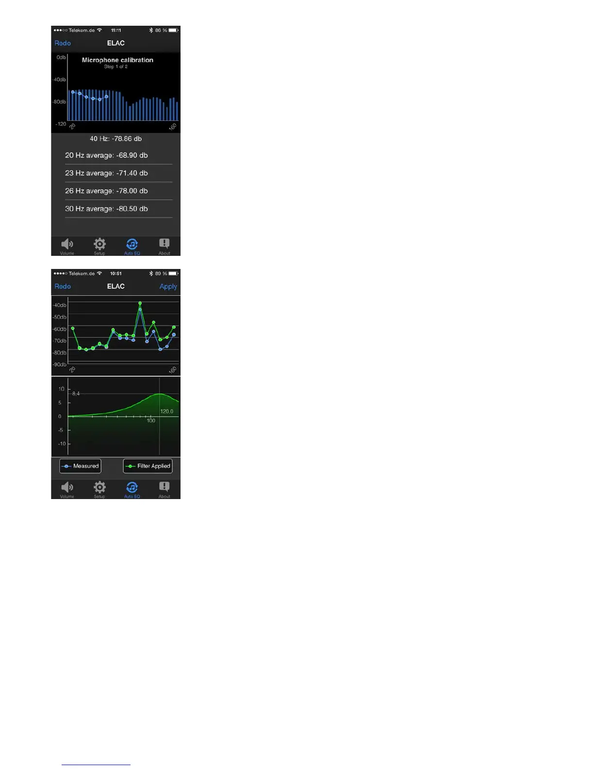 Wenn Sie die Messung mit „Apply“ übernommen haben, bleibt die Entzerrungs-