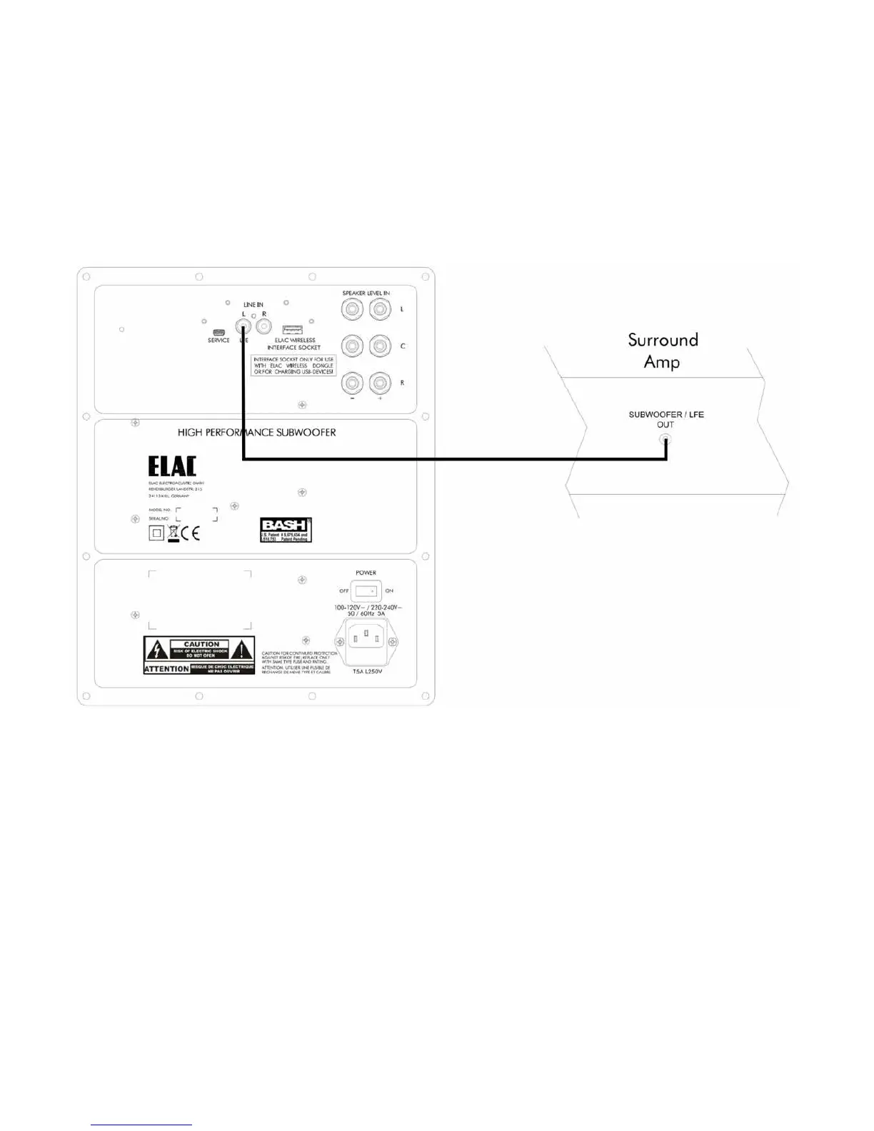 „LFE“ des Subwoofers über ein Mono-Cinch kabel verbunden. Da über diese Cinch-Verbindung der Subwoofer aus-