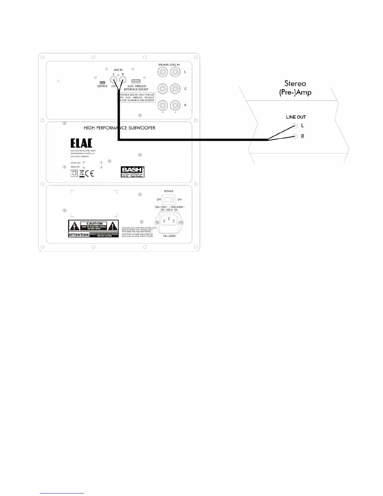 Wenn Sie den Subwoofer an den Ausgang eines Stereo-Verstärkers anschließen möchten, achten Sie darauf, dass