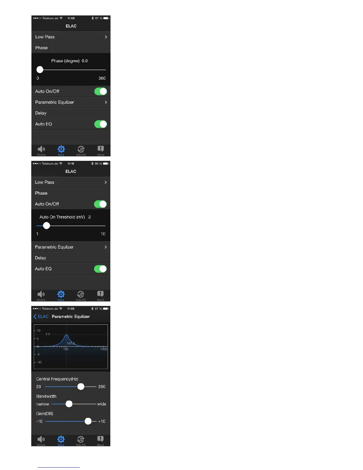 The parametric equalizer allows you to adjust the „CENTRAL FREQUENCY“ as well as the