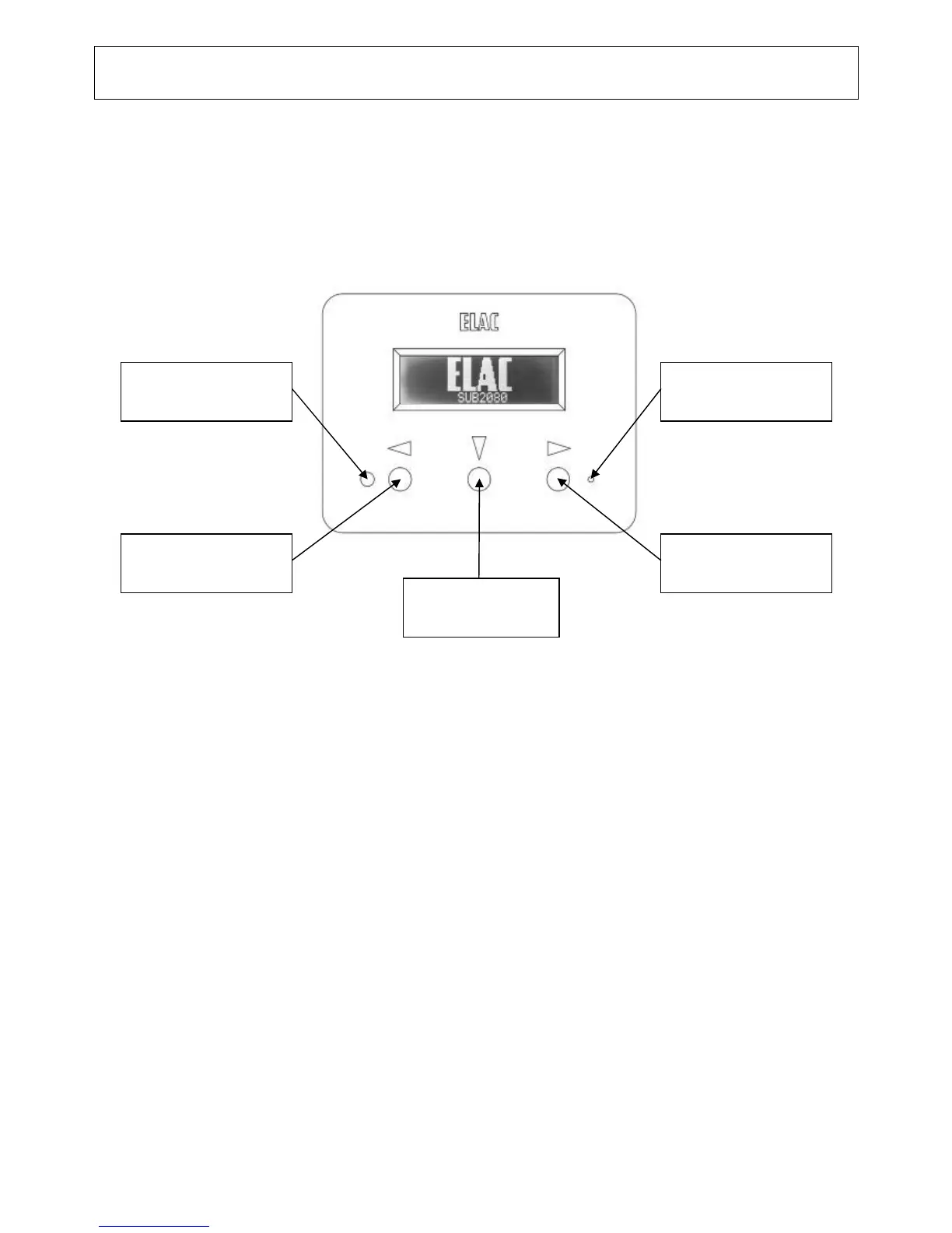 After switching on, the subwoofer displays shows the start screen with the ELAC logo and the respective type desig-