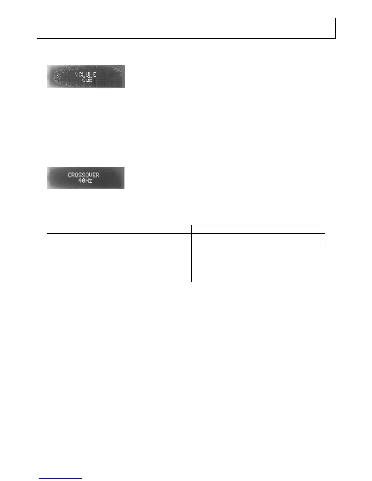 The sound volume of the subwoofer can be set using the parameter “Volume”.