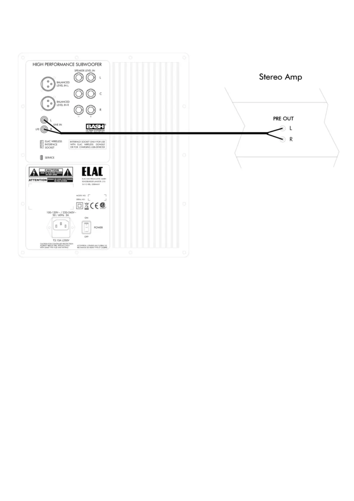 Wenn Sie den Subwoofer an den Ausgang eines Stereo-Verstärkers anschließen möchten, achten Sie darauf, dass