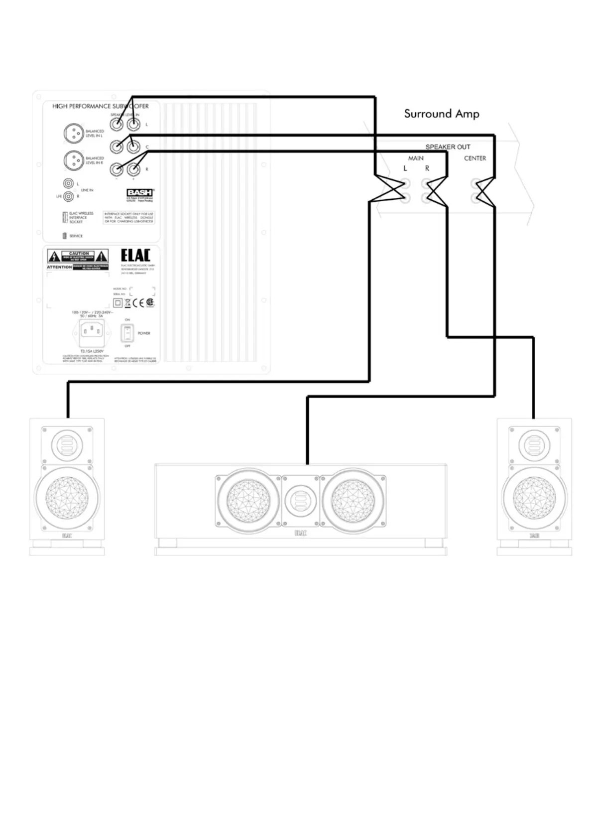 The corresponding loudspeakers (Center or Main) must then be set to “LARGE” in the menu on the AV receiver.