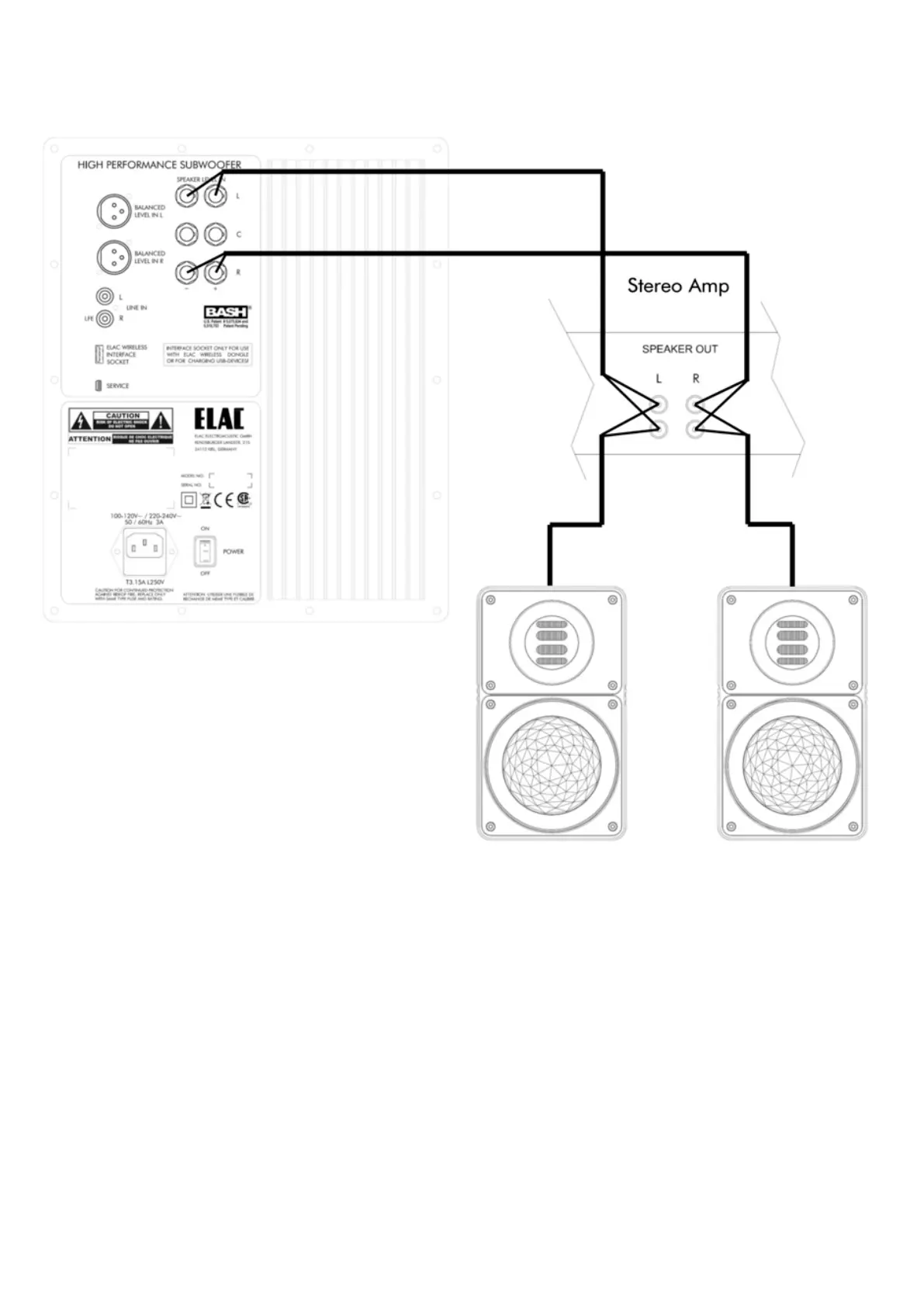The loudspeakers receive the full signal directly from the amplier with the subwoofer providing support and reinforcement