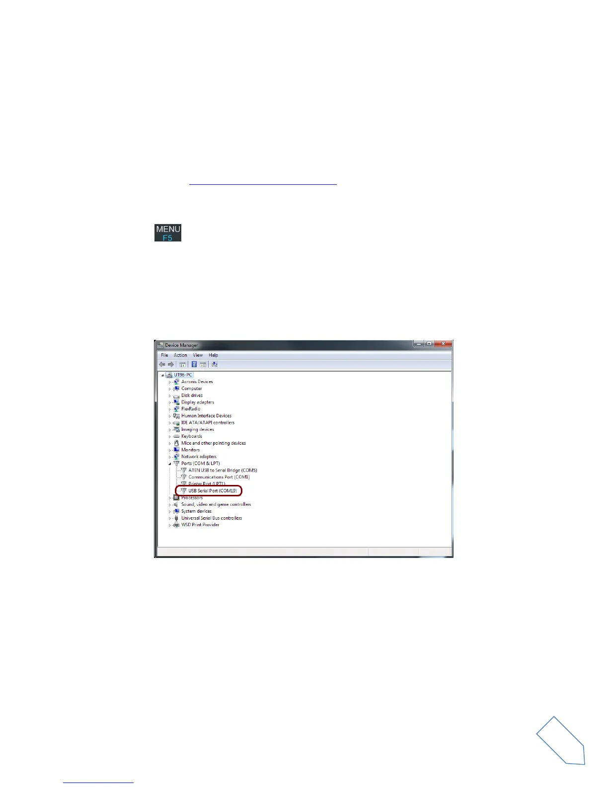In this case the CAT USB port number is COM19.