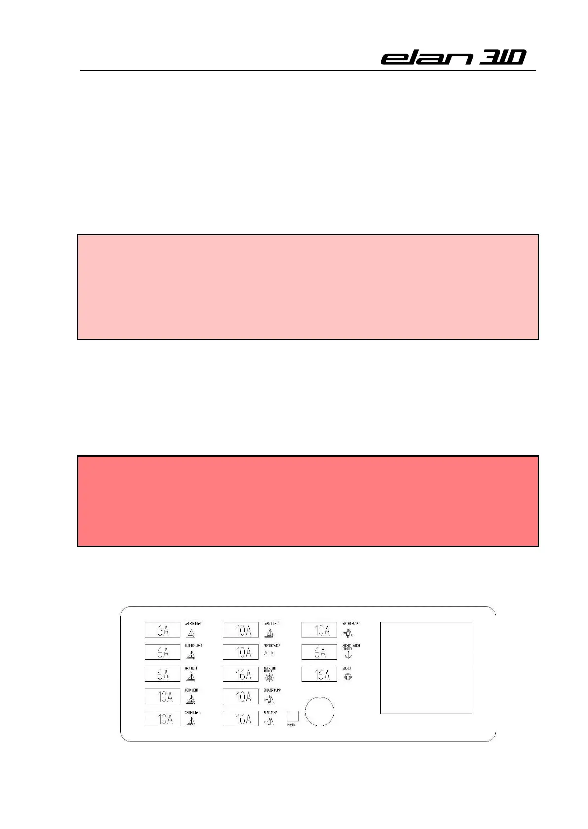 switches, one for the engine system, one for the anchor windlass and one for the other