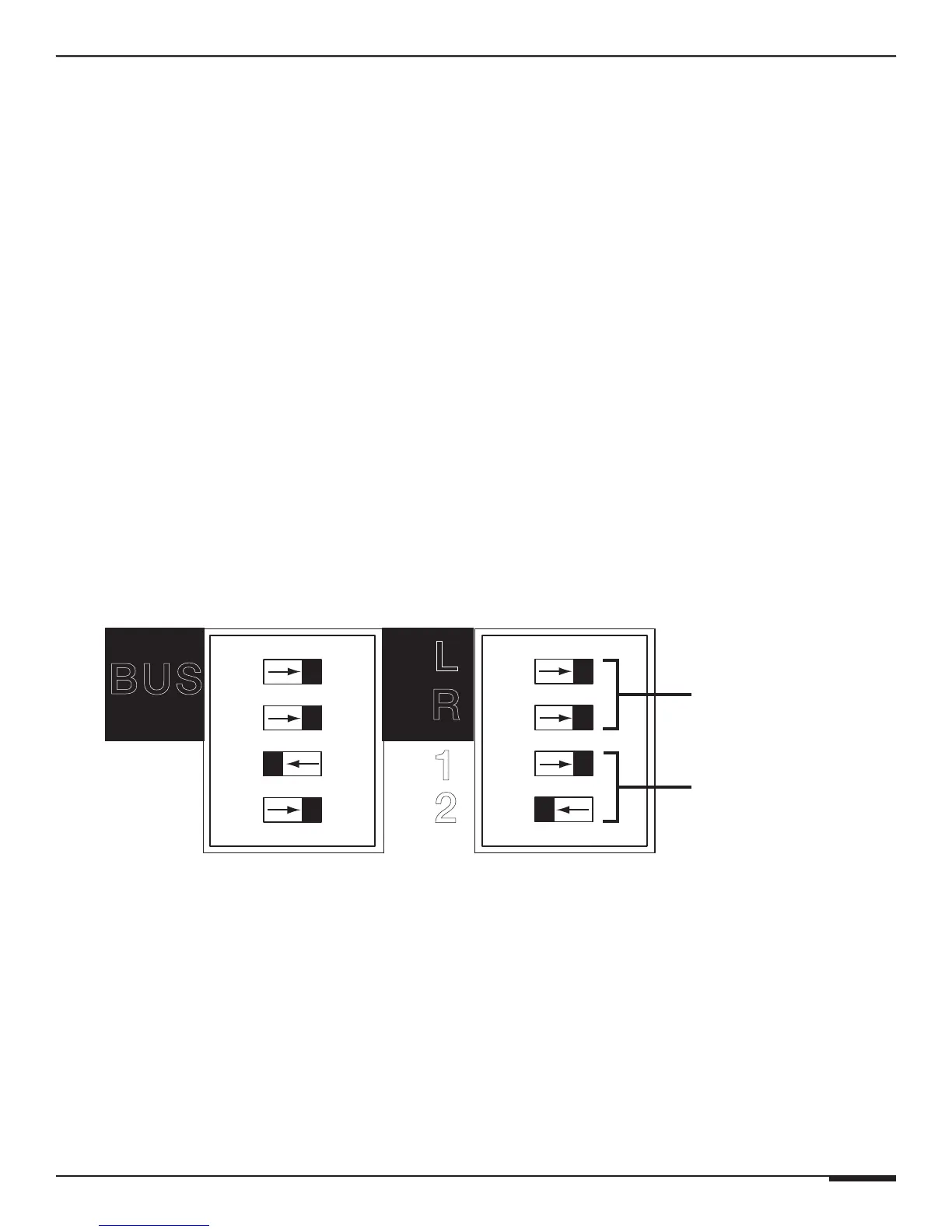 There are independent BUS DIP switches for each channel on the A12. The DIP switches labeled BUS L (Left) and