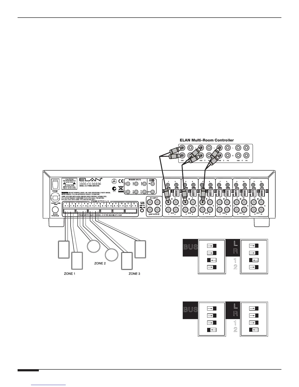 • ELAN Multi-Room Controller Zone Outputs 1-3 to A12 Inputs 1, 3, & 5 OR Inputs 2, 4, & 6 Using RCA 'Y'