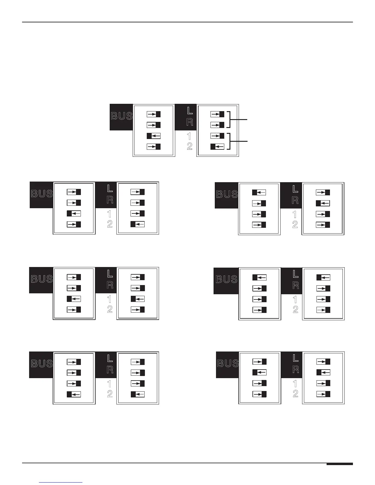 (set to the left position) at a time. Carefully review the diagrams below before setting DIP switches.