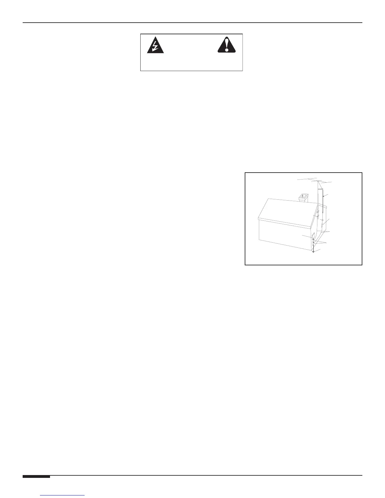 Power Lines—An outdoor antenna should be located away from power lines. When installing an outside antenna system, extreme