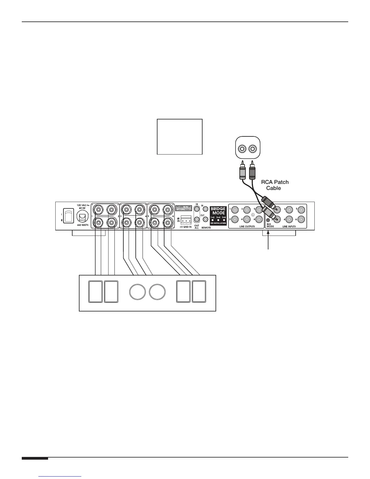 The A6 is designed to easily handle a Great Room application without any special setup procedures. In the example