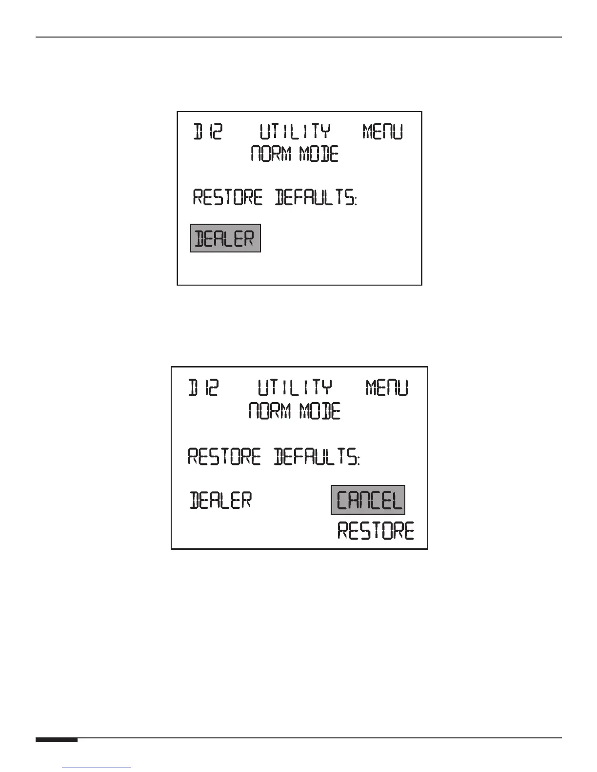 If Restore is selected the D12 will immediately restore the selected defaults.