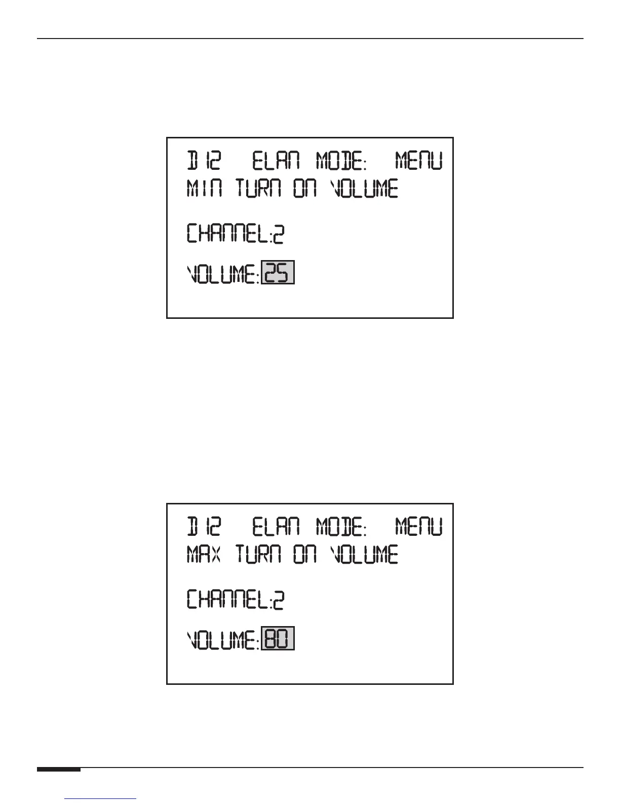 Press UP and DOWN buttons to select the Minimum Turn-On Volume.