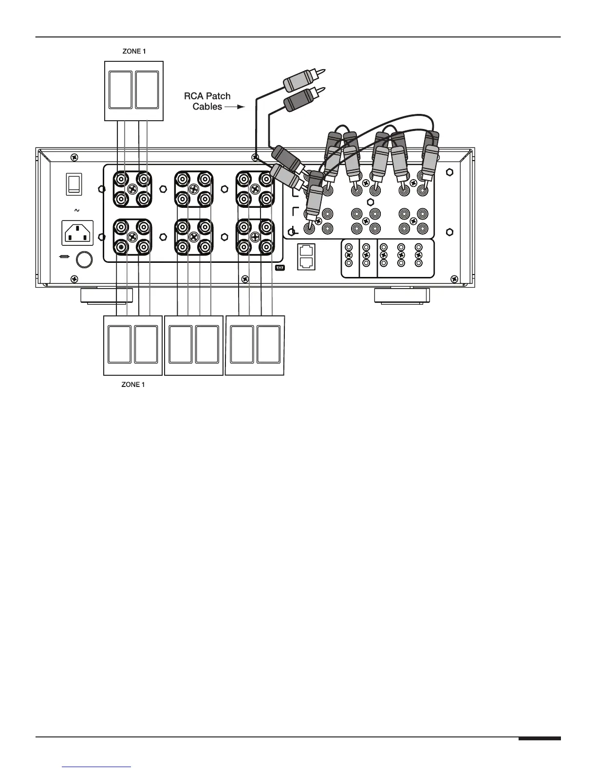 The RCA jumpers from audio outputs 1 and 2 to audio inputs 3 and 4 and audio outputs 3 and 4 to audio inputs 5