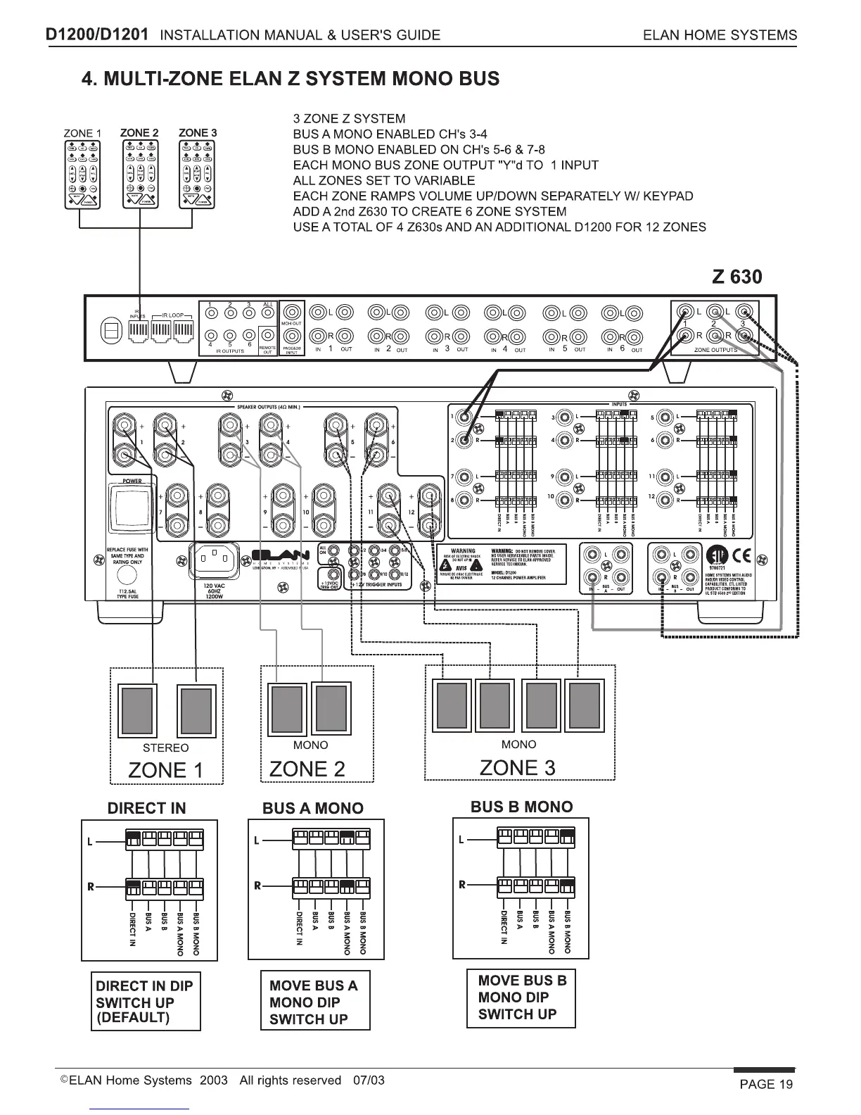 Elan D1200 - Mono Multi-Zone Systems; Multi-Zone ELAN Z System Mono Bus