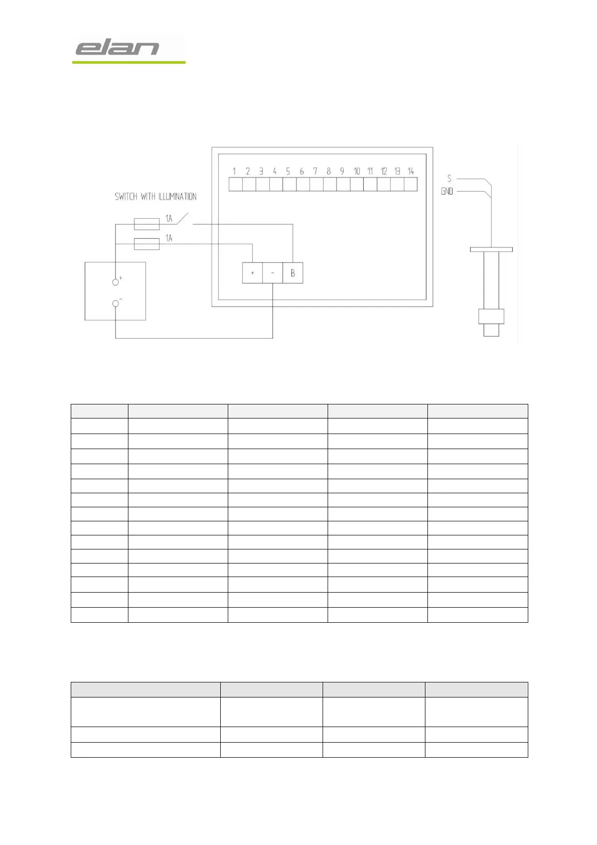 Connection of sensors, measuring instruments in the table below: