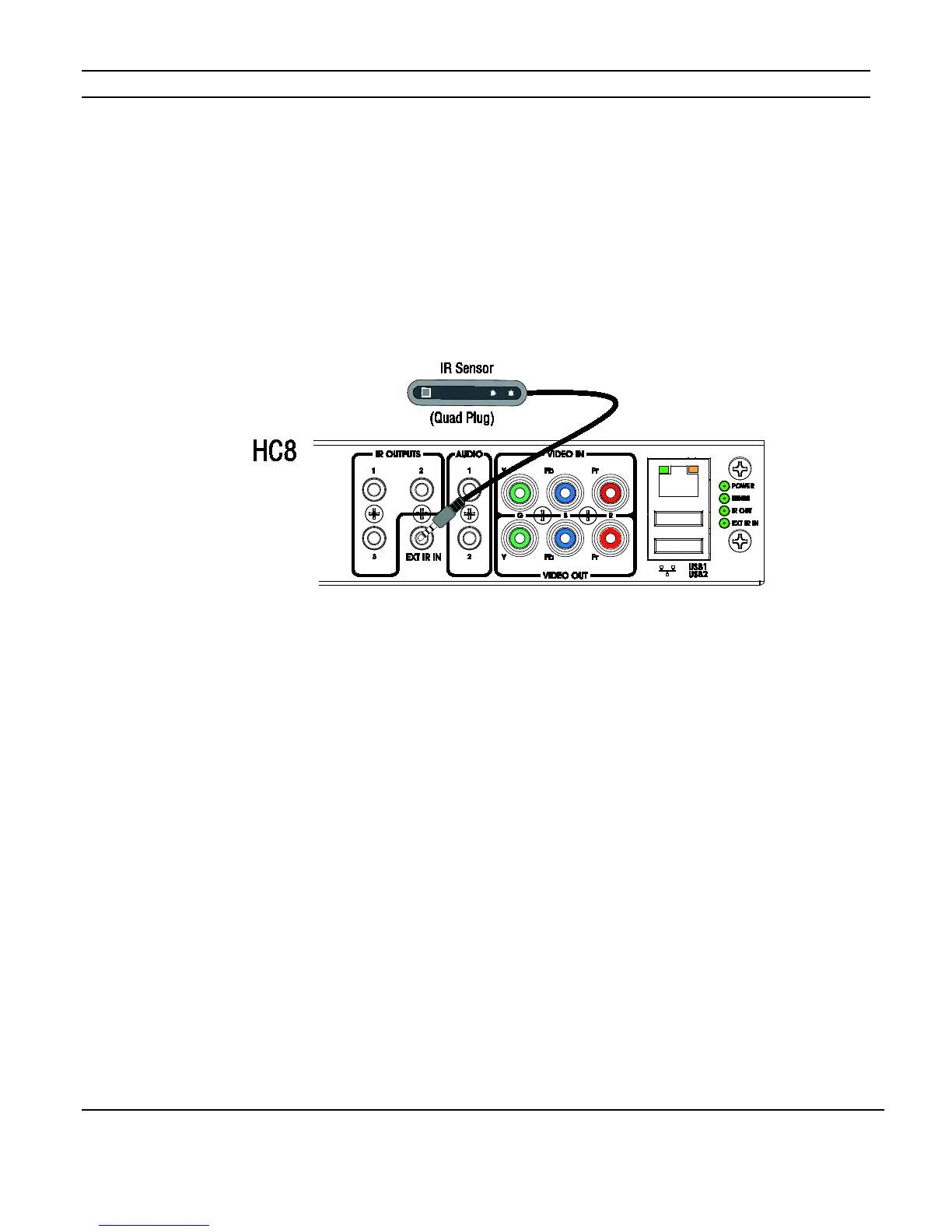 This connection allows the HC4 and HC8 to receive IR input from a Quad plug IR receiver