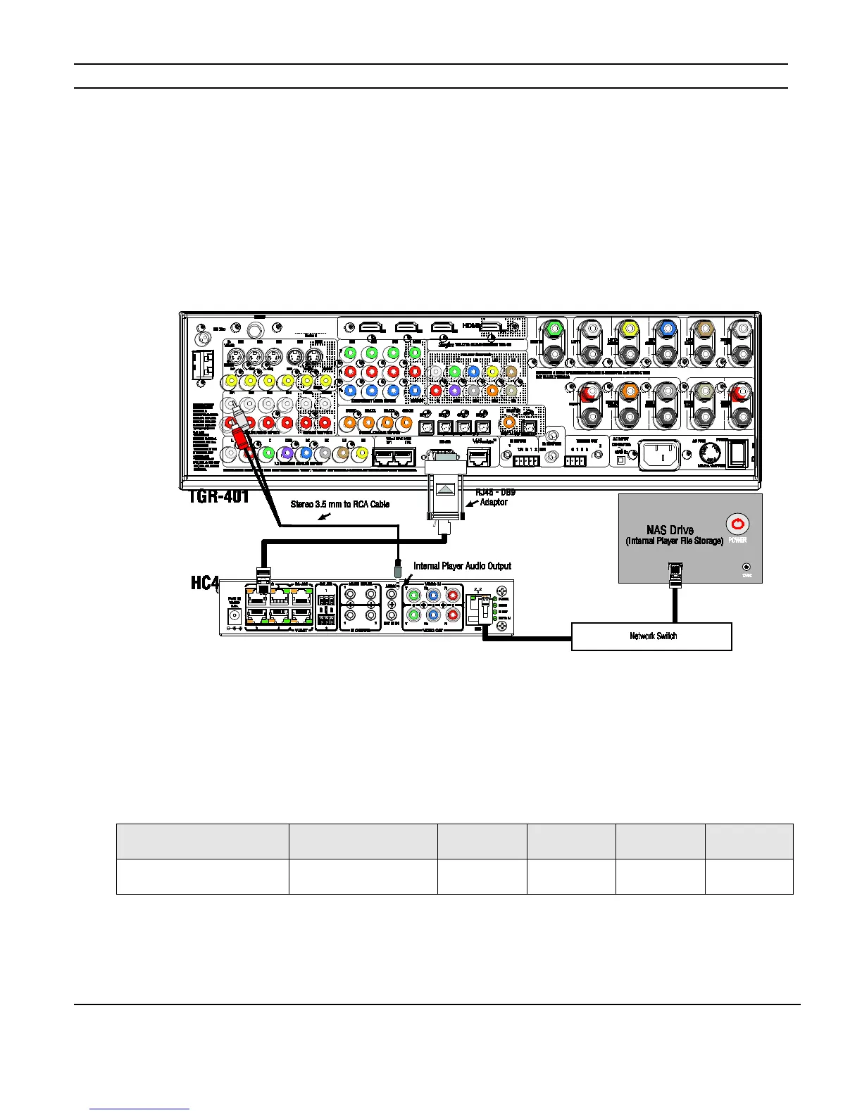 The Internal Player’s Audio Outputs connect to the Source Audio Inputs of the multi-room