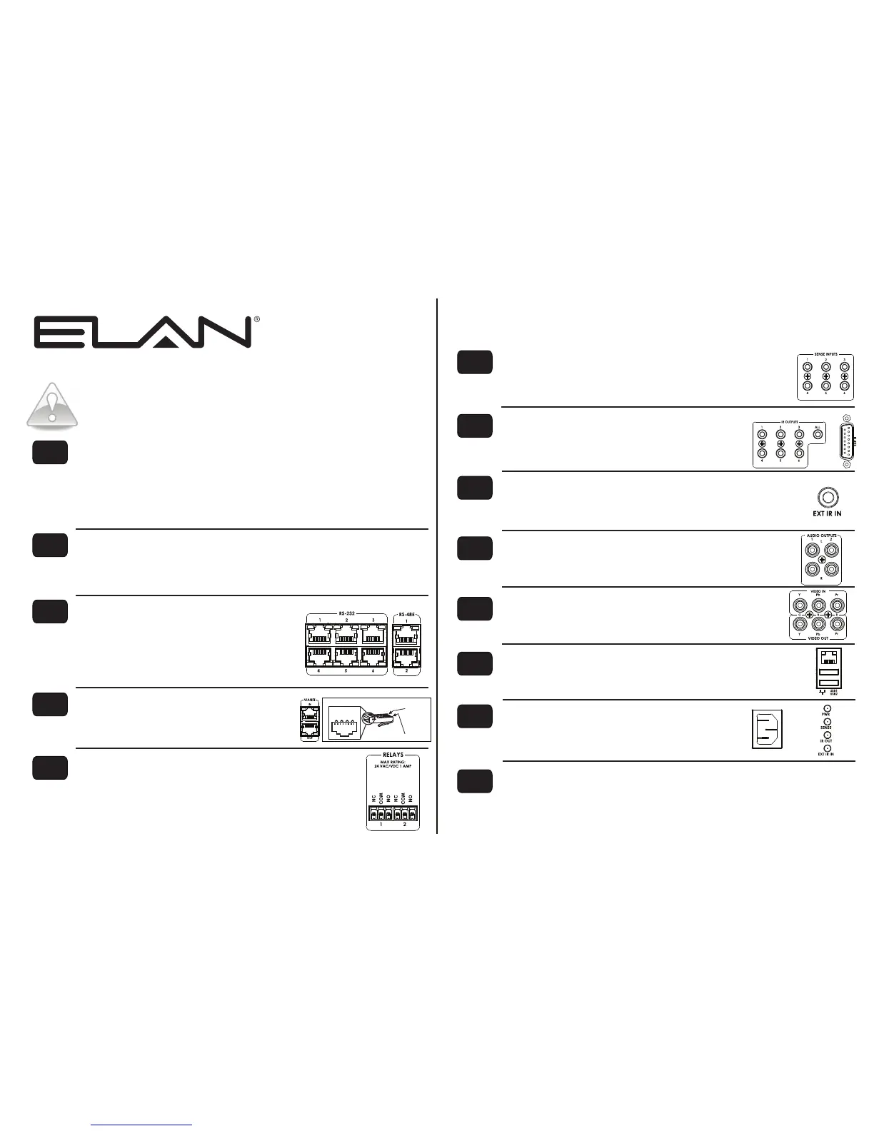to IR controlled devices located in zones. Use 3.5 mono cables to connect to the